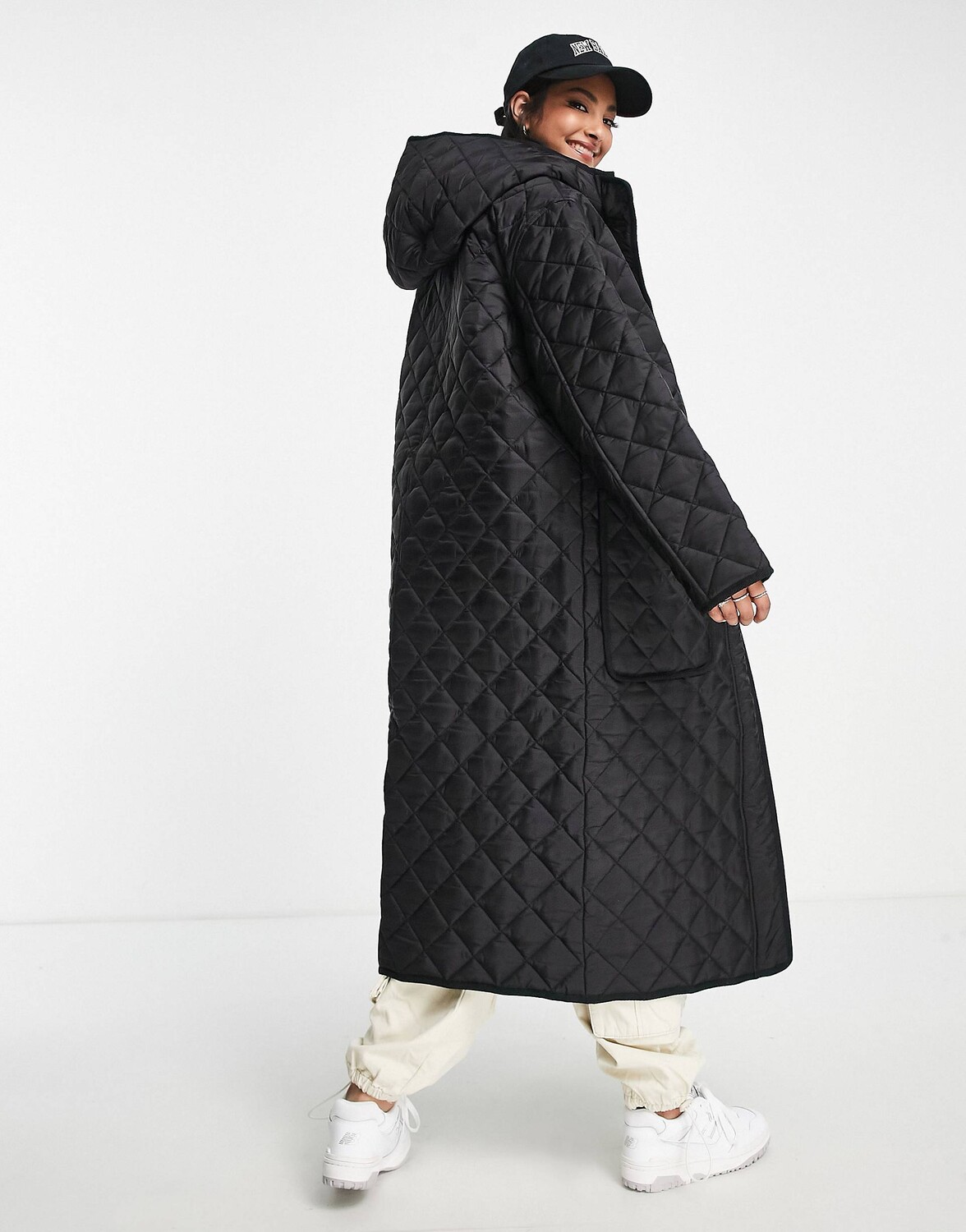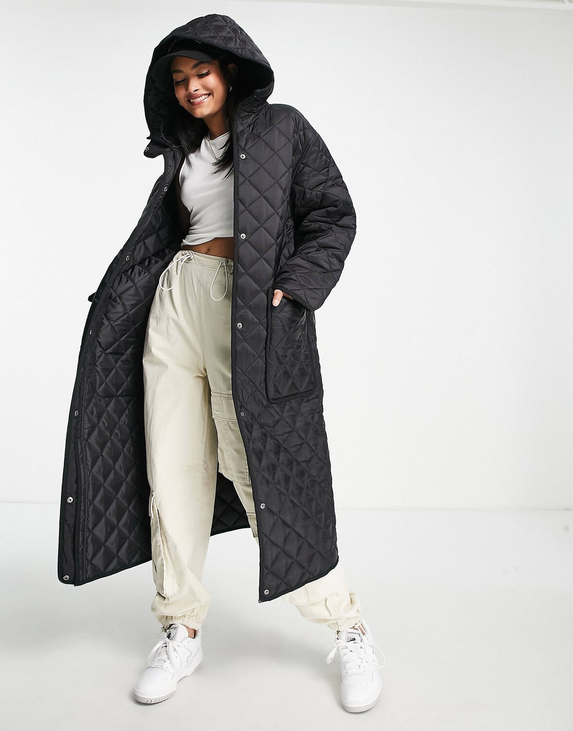 Черное удлиненное стеганое пальто ASOS DESIGN