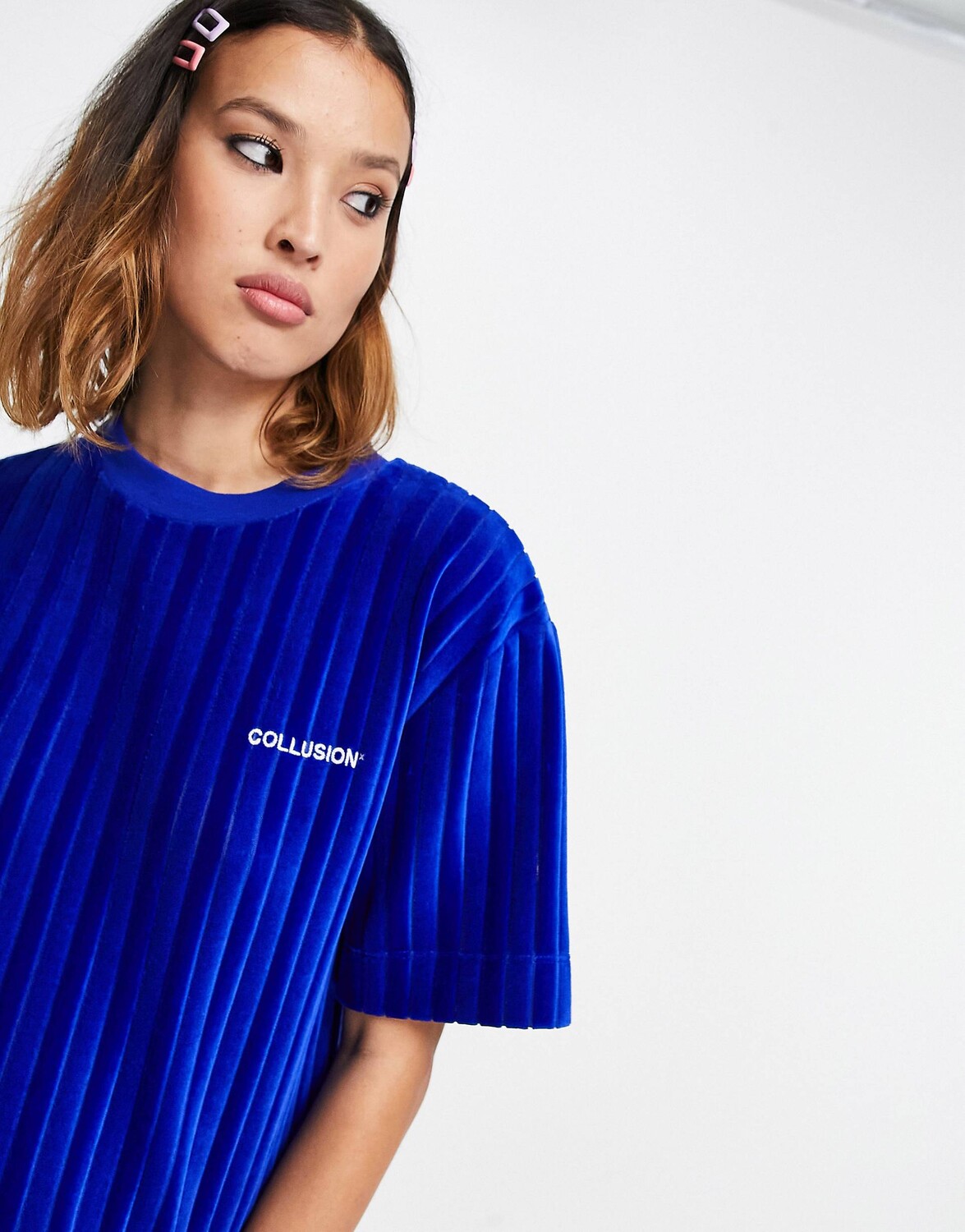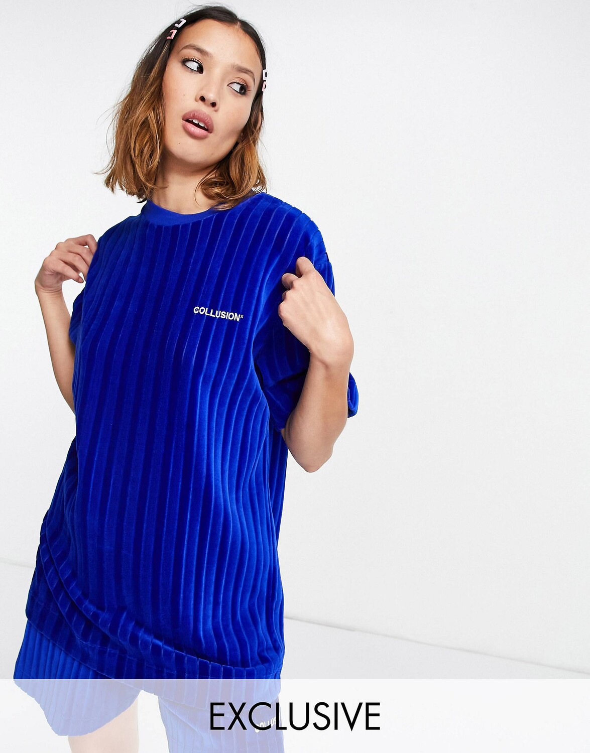 Синяя бархатная футболка свободного кроя COLLUSION