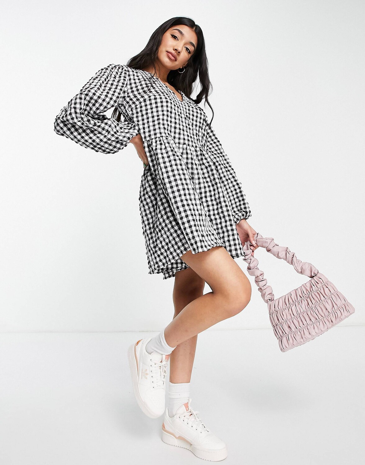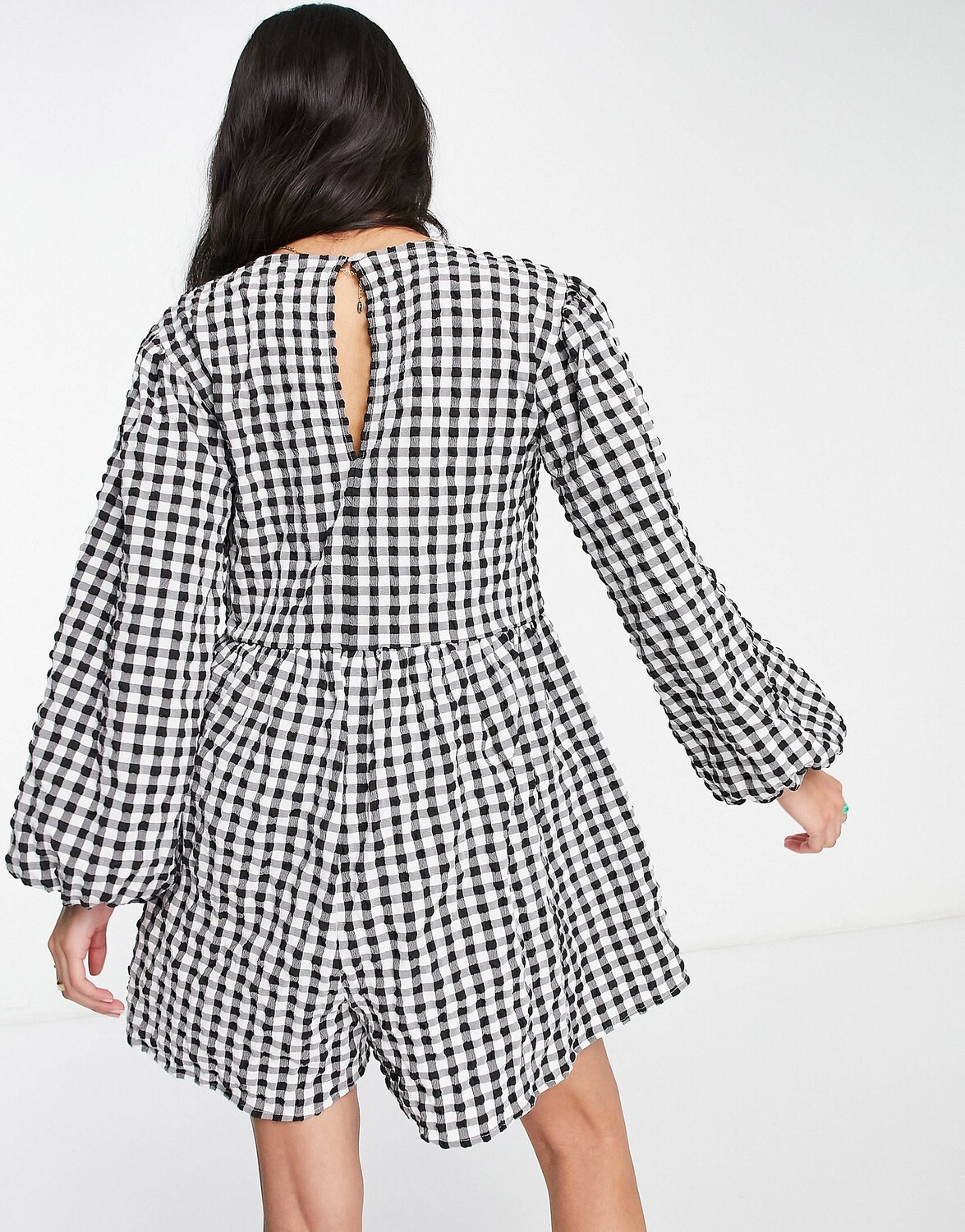 Черный комбинезон в мелкую клетку с пышными рукавами ASOS DESIGN