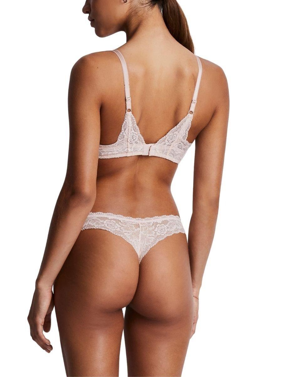 Стринги Aubade Rosessence Care. Трусики-стринги с кружевом средней посадки, малозакрывающие кожу. Это изделие следует стирать в деликатном режиме.