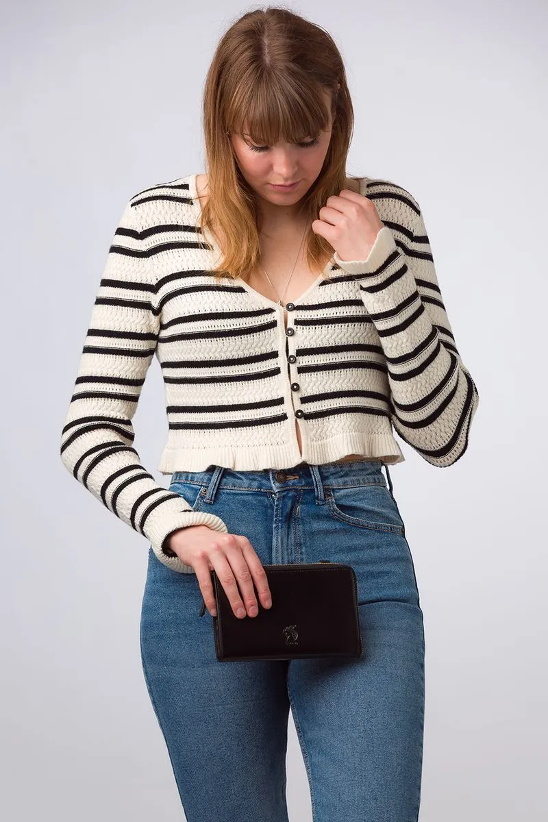 Идеальный перекрестный дизайн: Winnie берет за основу классический дизайн сумки и превращает ее в идеальный аксессуар для особых случаев. Эта просто элегантная модель из коллекции Signature Collection от Conkca легко трансформируется из сумки через плечо или клатча благодаря съемному и регулируемому тонкому кожаному ремешку с максимальной длиной 75 см. Не забудем и о отделении для хранения с 16 отделениями для карточек, которые расположены внутри из 100% хлопка и скрыты уникальной круглой молнией.