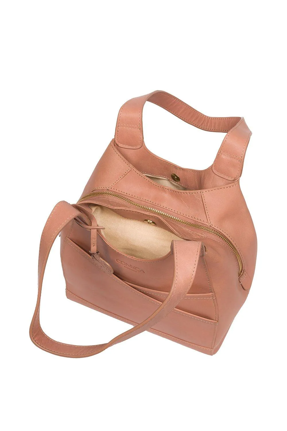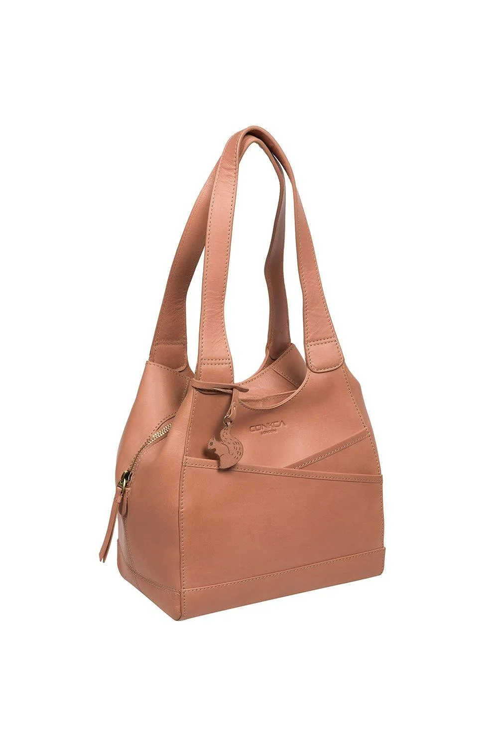 Сумка Juliet от Conkca London изготовлена вручную из цельнозерновой кожи буйвола, что придает ей красивый вид. Привлекательные накладные мешочки обеспечивают достаточно места для хранения вещей в пути. Два кармана на магнитных застежках расположены по бокам просторного центрального отделения и имеют два внутренних кармана, идеально подходящих для смартфона и ключей. Подкладка из натурального и необработанного 100% хлопка. Украшено неповторимым шармом в виде белки Конкка.