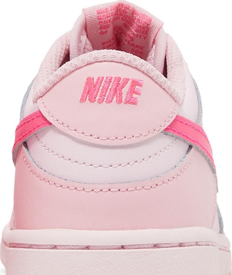 Кроссовки Nike Dunk Low выполнены полностью из кожи с более светлыми и темными оттенками розового цвета по всему верху. Оттенок Hyper Pink используется на логотипах Swoosh и фирменных зонах. Розовая тема продолжается на резиновой подошве, завершая дизайн.