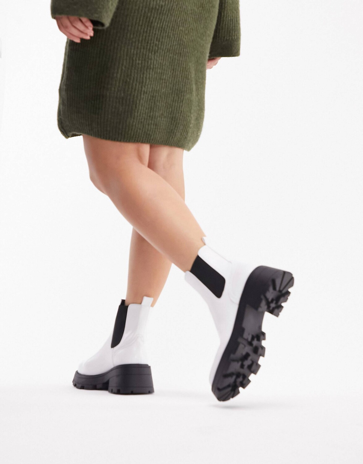 Topshop Белые массивные ботинки челси Wide fit Bella