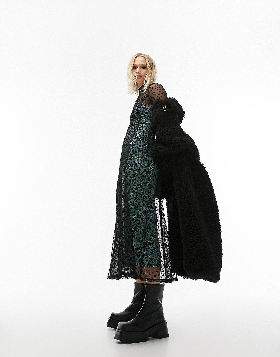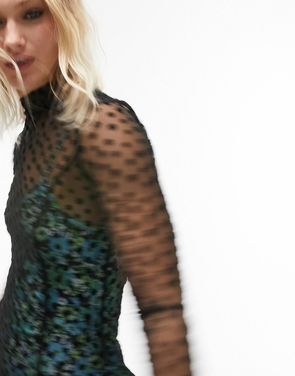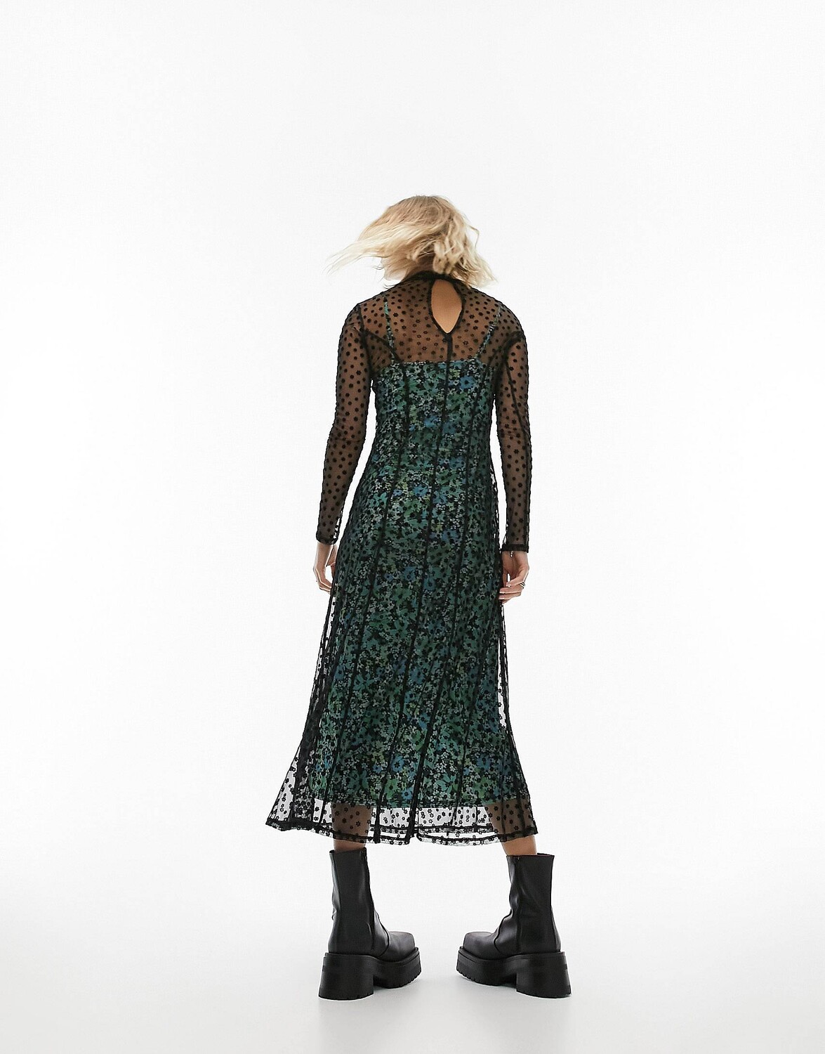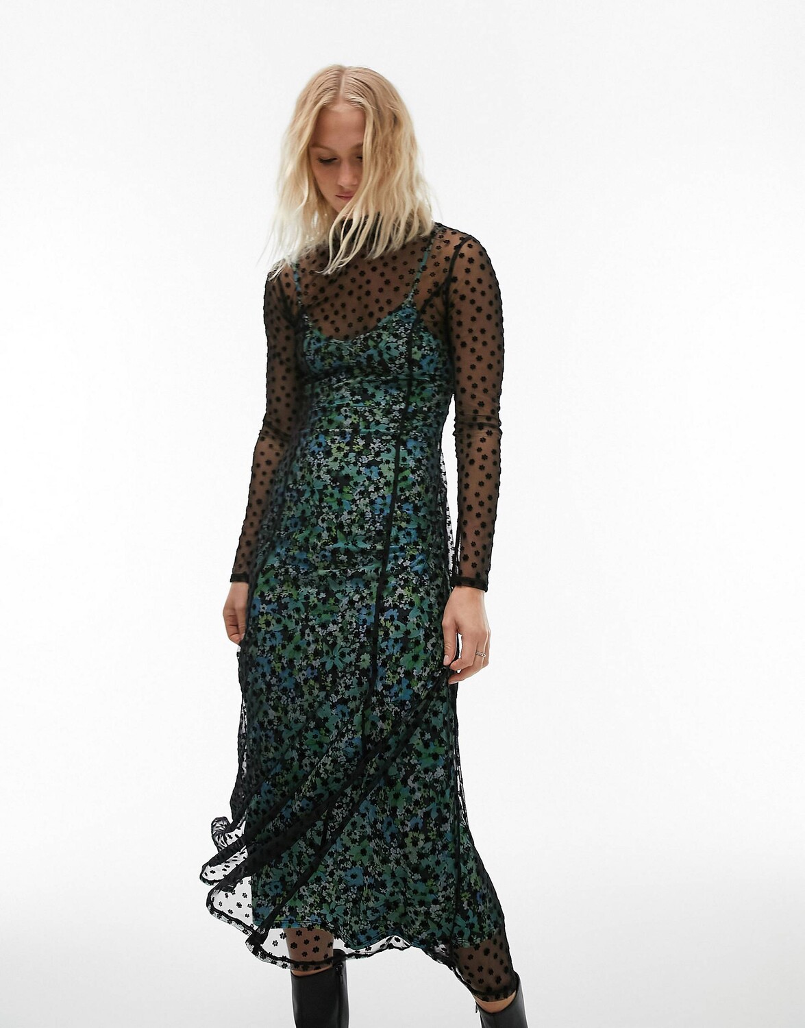 Разноцветное платье миди из флокированной сетки с цветочным принтом и контрастной подкладкой Topshop