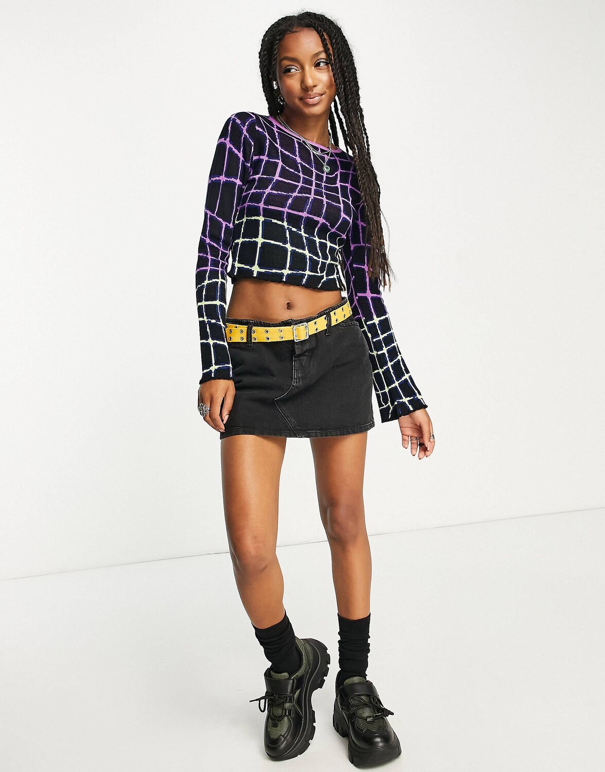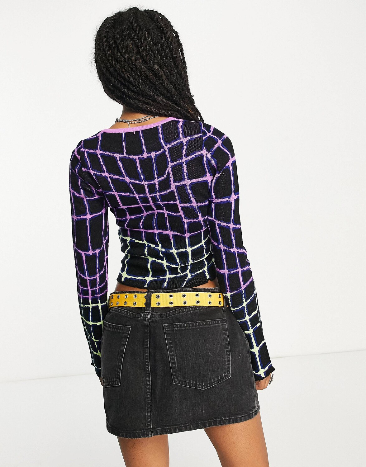 Черный укороченный джемпер в абстрактную клетку ASOS DESIGN