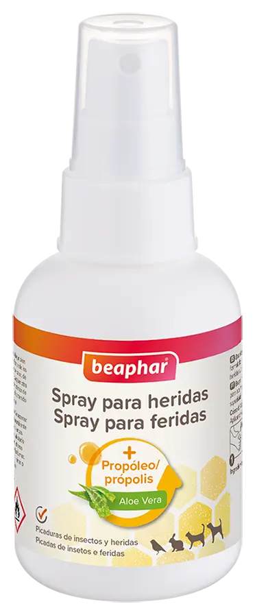 Спрей для ран Beaphar был специально разработан на основе натуральных целебных свойств прополиса в сочетании с маслом чайного дерева, алоэ вера и эфирными маслами для успокоения, защиты и содействия заживлению поверхностных ран и сухой, раздраженной кожи. Его формула с пчелиным прополисом и алоэ вера идеально подходит для лечения кожи после укусов насекомых или клещей. Спрей помогает очистить ссадины, одновременно способствуя процессу регенерации кожи. Подходит для кошек, собак, птиц и мелких животных.
