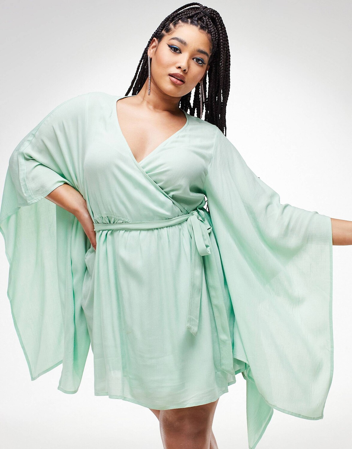 Пляжное платье цвета хаки с объемными рукавами ASOS DESIGN Curve