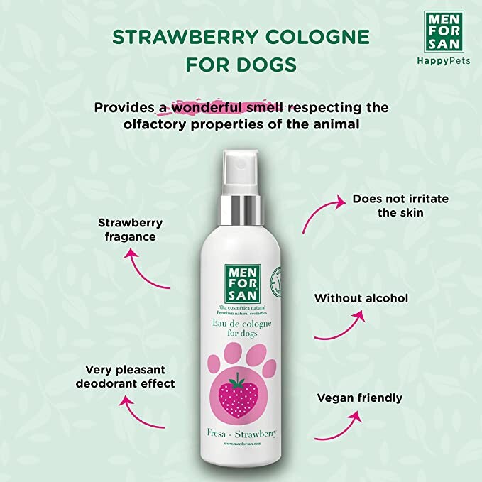 Одеколон для собак с натуральными фруктовыми ароматами, специально разработанный для обеспечения свежего запаха и интенсивного приятного дезодорирующего эффекта после купания, при бережном отношении кожа и обонятельные характеристики животного.