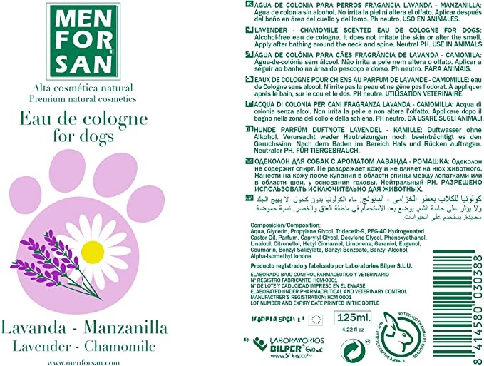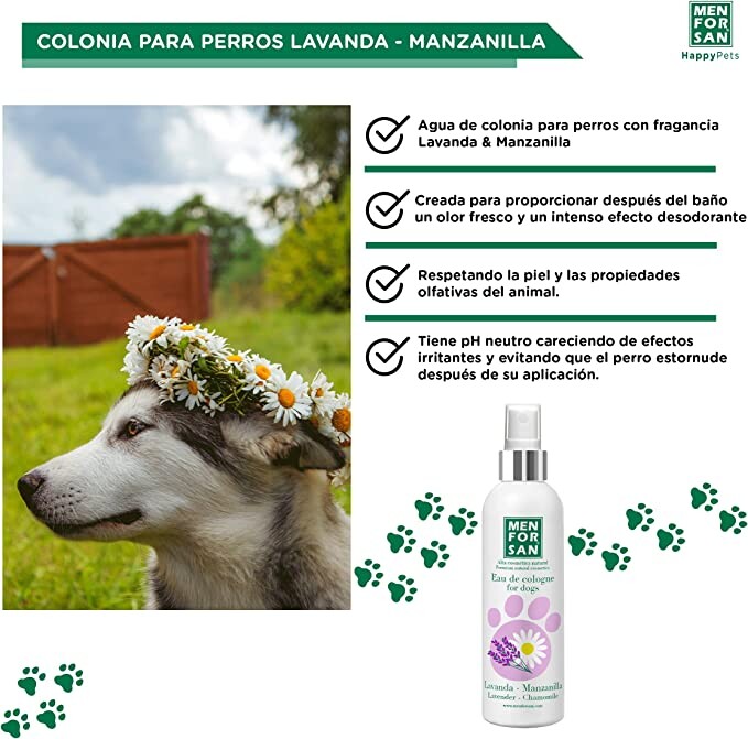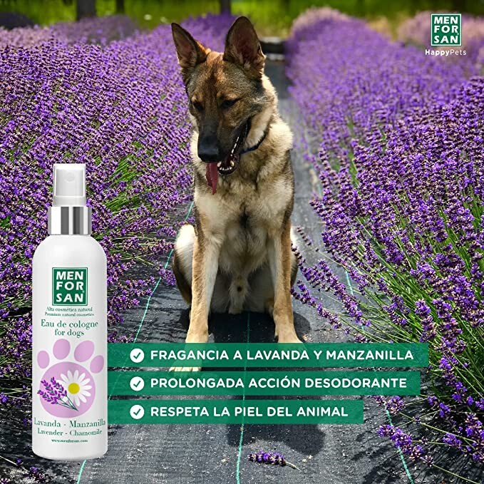 Вода Colonia для собак с ароматом лаванды и ромашки, специально созданная для приятного запаха свежести после купания.