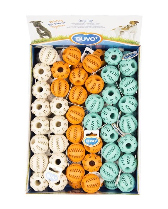 Резиновая игрушка для собак от Duvoplus в форме ароматизированного шарика чистит зубы.