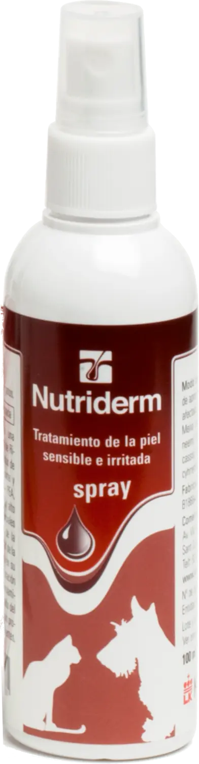 Масла-спрей для лосьонов для кожи, богатые незаменимыми жирными кислотами, а также десенсибилизирующими и смягчающими средствами. Свойства Спрей Nutriderm содержит комбинацию рафинированных масел и нима рибеса черного с известными соединениями смягчающего и десенсибилизирующего действия: ПЭА, ак. глицирретинико и ихтиола. Благодаря высокому содержанию незаменимых жирных кислот Омега-6 (основной компонент липидного слоя) способствует целостности защитного слоя кожи. Высокое содержание гамма-линоленовой кислоты способствует целостности липидного слоя кожи. Масло нима, содержащееся в его формуле, помогает поддерживать влажность кожи. ПЭА (памитоэтиланоламида), глицирретиновая кислота (экстрагированная из солодки), придает ей десенсибилизирующие ихтиоловые и смягчающие свойства. Спрей Нутридерм показан в качестве единственного или дополнительного лечения (в зависимости от тяжести) аллергической или воспалительной кожи, а также локализованного процесса, при котором возникает или не возникает зуд или жжение. Хороший выбор для лечения локального зуда и аллергии у собак и кошек. Режим лечения Распылять пораженный участок два раза в день с расстояния примерно 20 см.
