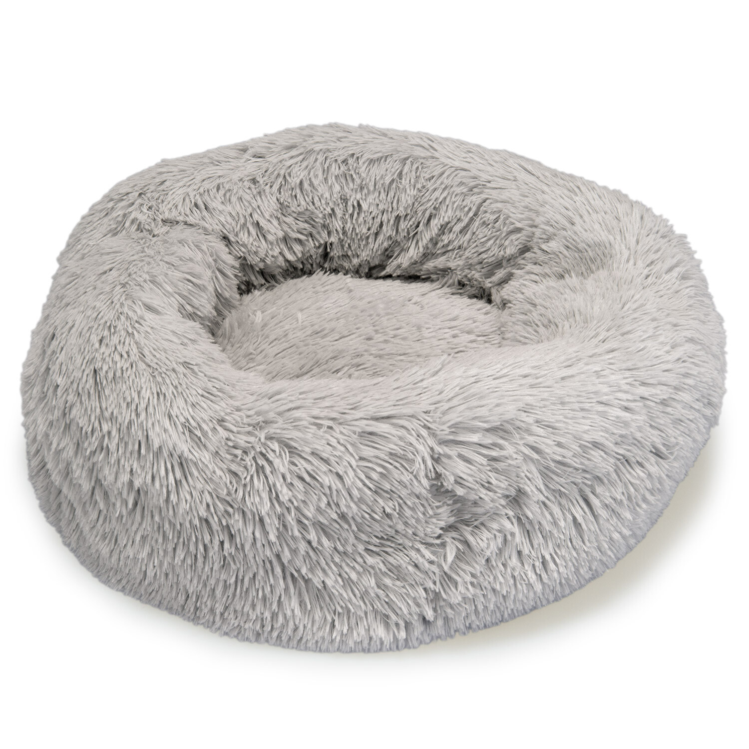 Светло-серая круглая кроватка, очень мягкая и удобная, идеально подходит для наших питомцев. Более высокий край помогает расслабить голову и шею, а сверхмягкая внутренняя набивка снимает нагрузку с суставов и мышц конечностей.
