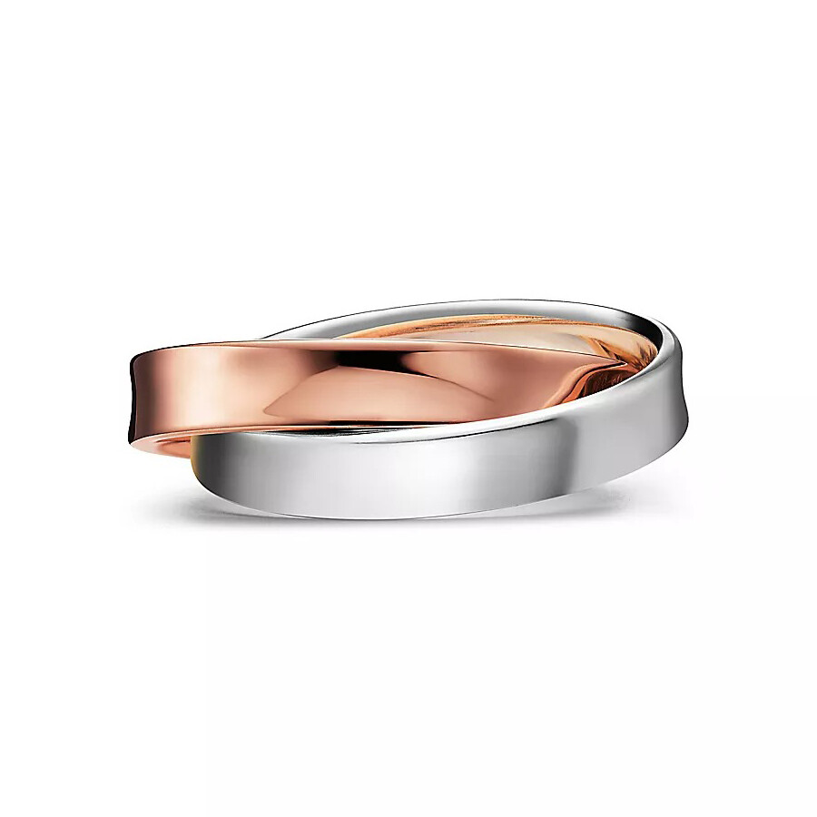 Дуэт перекрещивающихся колец придает современное звучание этому дизайну, вдохновленному наследием. Носите этот выделяющийся силуэт сам по себе или сочетайте с другими кольцами Tiffany для создания неожиданного образа.
