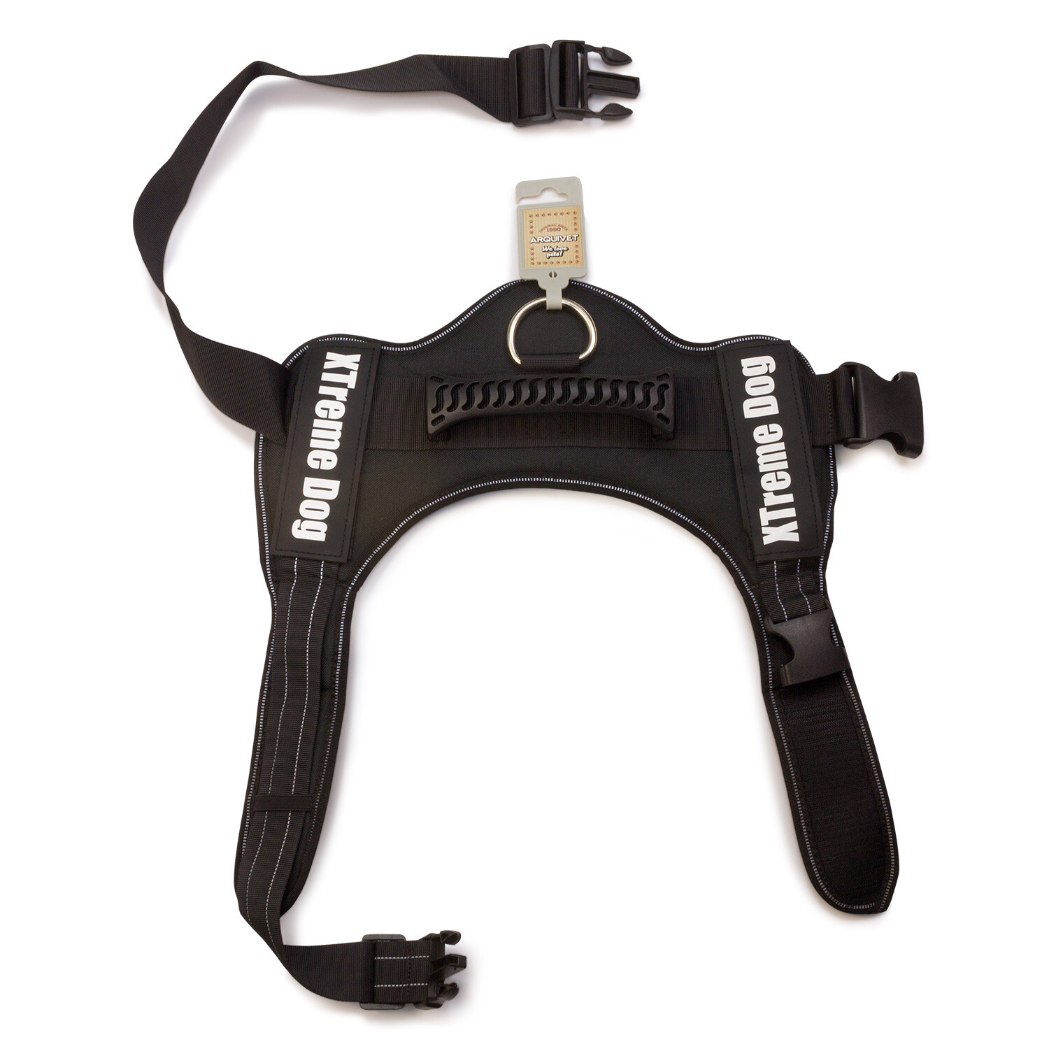Идеальная шлейка для безопасного и надежного выгула вашей собаки. Шлейка для собак Xtreme Dog. Особо прочный, эргономичный, регулируемый в области шеи и живота с помощью липучки и пластиковой застежки. Изготовлен из полиэстера, с кольцом из нержавеющей стали для крепления поводка и ручкой для ручного удерживания. Идеальная шлейка для прогулок с собакой, обеспечивающая полную безопасность и защиту.