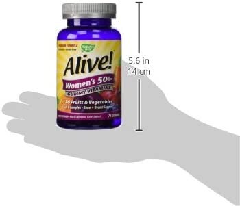 Женские жевательные витамины сделаны из 26 фруктов и овощей и подслащены органической тапиокой и тростниковым соком. Жевательные витамины Nature's Way Alive Women's 50 Plus изготовлены на основе натурального пектина и не содержат искусственных ароматизаторов или консервантов. Nature's Way Alive Woman's 50 + Gummy Vitamins не содержит глютена, дрожжей, пшеницы, молочных продуктов, яиц или арахиса. Специально сбалансирован для женщин в возрасте 50 лет и старше. Полный комплекс витаминов группы B, дополнительный витамин B12 и витамин D, кальций, фосфор, бор и лютеин.