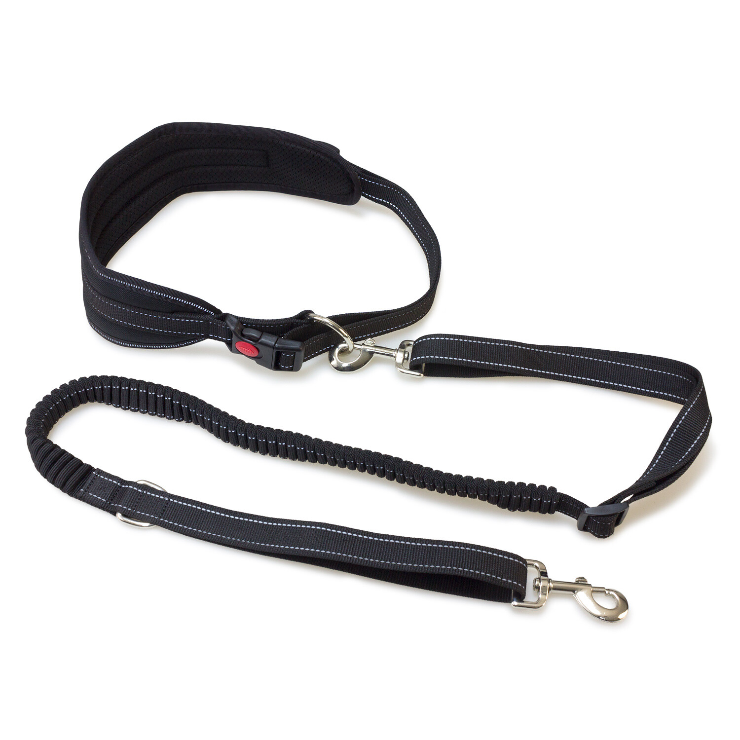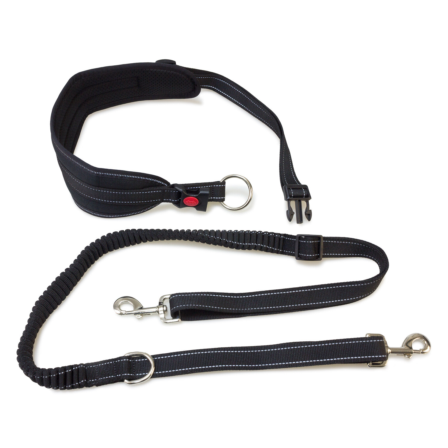 Поводок с лямкой для Каникросса с собаками среднего размера. Мягкий ремень без помощи рук и эластичный ремень с набивкой. Изготовлен из прочного черного нейлона