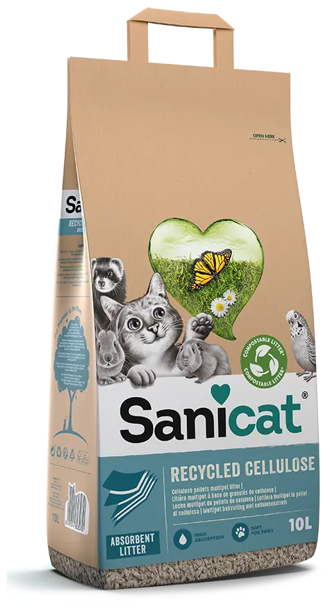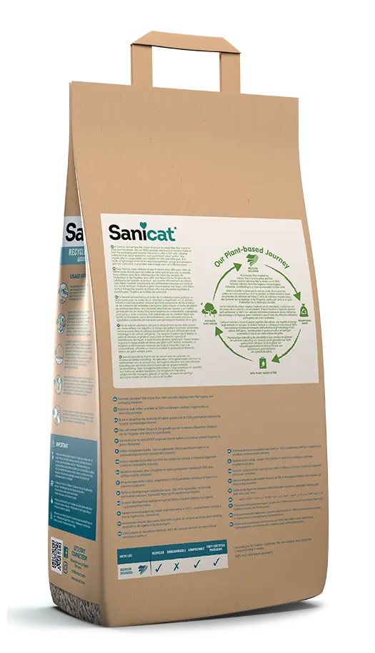 Пеллеты из переработанной целлюлозы Sanicat — это натуральный впитывающий наполнитель, изготовленный на 100% из отходов упаковочной и гигиенической промышленности. Наш наполнитель способствует более устойчивому циклу наполнителей для кошачьих туалетов.