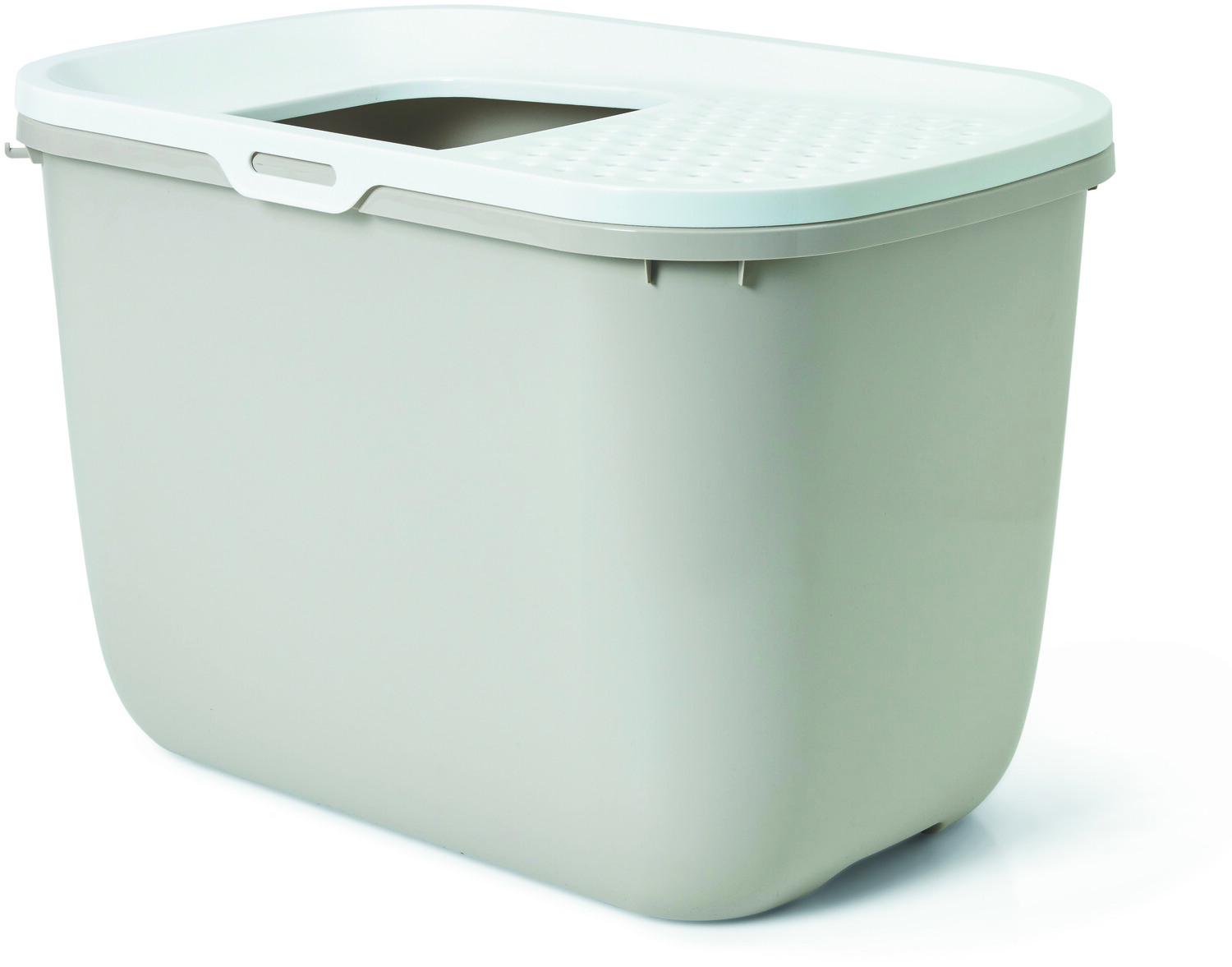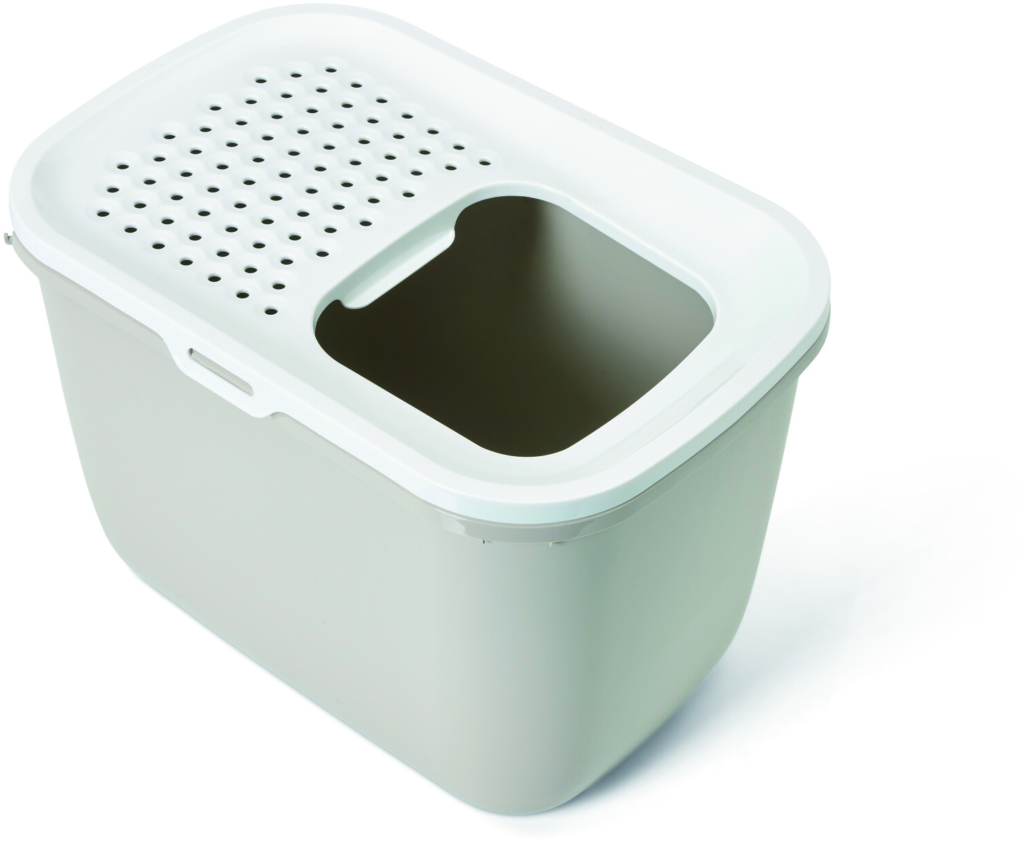 Современный туалет для кошек с верхним входом. Идеально подходит для кошек, которые при мочеиспускании встают, мочатся задом наперед или разбрасывают мусор. Также подходит для семей с кошками и собаками, поскольку не позволяет собакам собирать наполнитель. Перфорированная, слегка наклоненная крышка легко снимается для чистки. Если кошка покинет туалетный лоток и наступит на перфорированную крышку, наполнитель попадет обратно в туалетный лоток, а не в ваш дом. Ручки внизу для удобства транспортировки подноса. Он также имеет крючок для крепления шпателя, который будет удалять комки песка с отложений. Размеры: 59x39x40 см. Цвет серый антрацит.