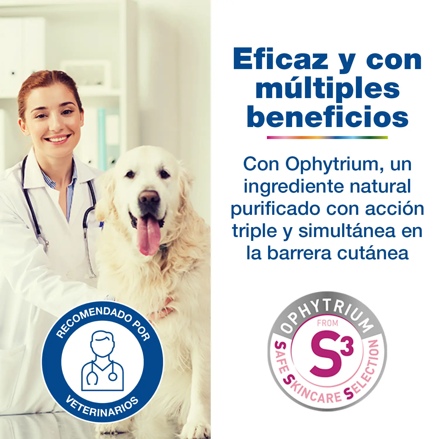 Не содержит моющих средств, сульфатов, парабенов, красителей и наночастиц. Формула высокой толерантности. Гипоаллергенные ароматы и сбалансированный pH. Разработан и протестирован ветеринарными дерматологами. Компания S3 тщательно отобрала офитриум среди многих других ингредиентов из-за его высокой переносимости и одновременного тройного эффекта: