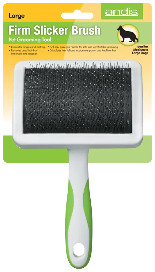 Щетка-пуходерка средней жесткости Andis для ухода за домашними животными удаляет колтуны и колтуны и замедляет рост волос до 90 процентов. Он помогает удалить мертвые волосы снизу и сверху и имеет удобную нескользящую ручку для безопасного и комфортного ухода. Он даже стимулирует волосяные фолликулы, способствуя росту и здоровью волос.