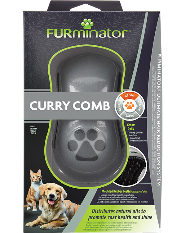 Manopla Curry Furminator® помогает распределять натуральные масла, обеспечивая здоровье и яркость шерсти. Используйте его в любое время на сухие или влажные волосы в течение нескольких минут за сеанс.