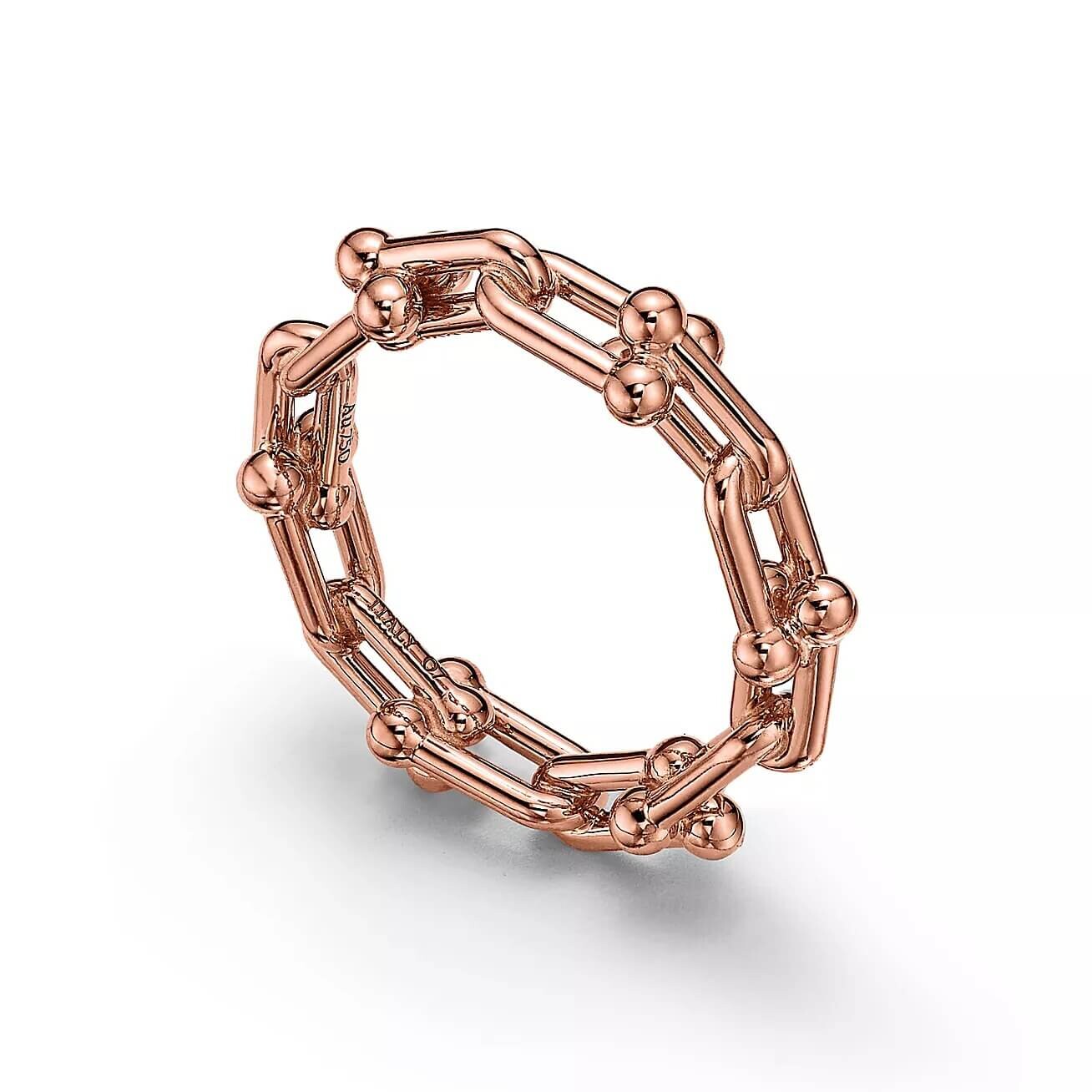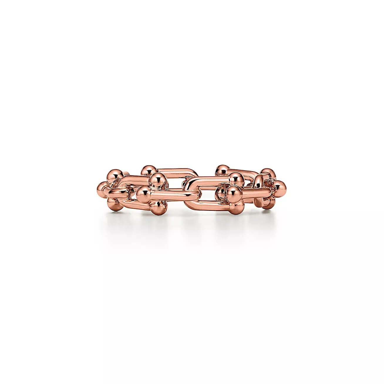 Это кольцо с фирменным дизайном gauge link из коллекции из розового золота 18 карат. Его красиво носить как отдельно, так и в сочетании с другими металлами.