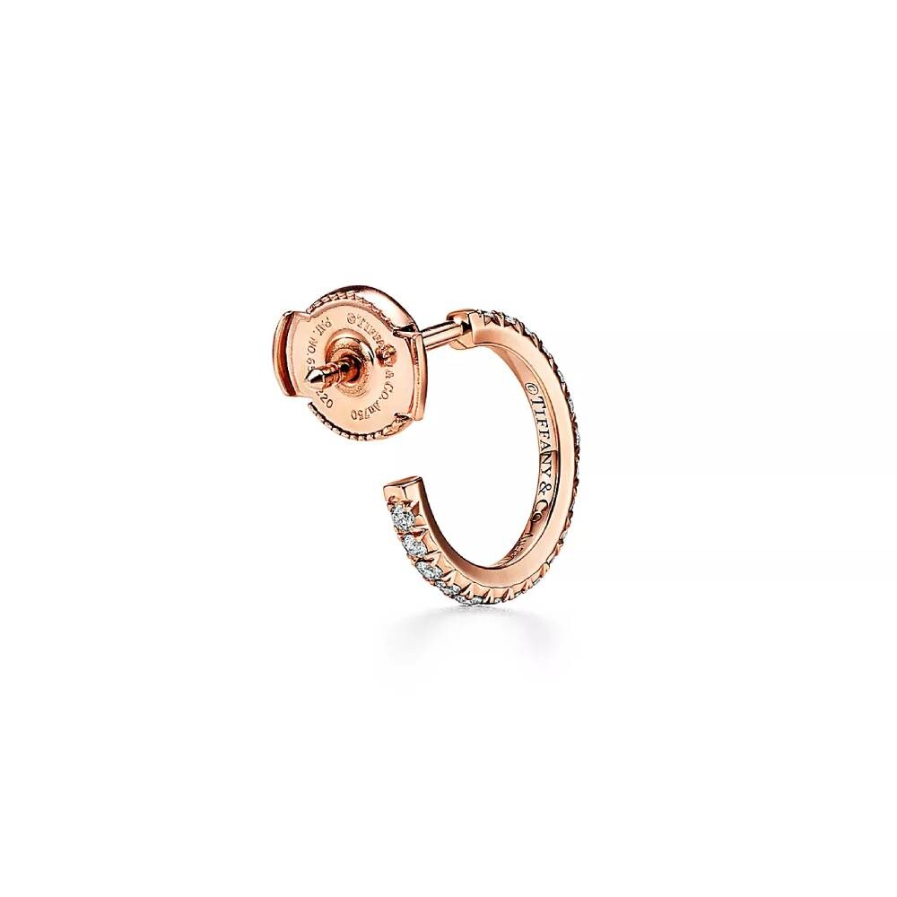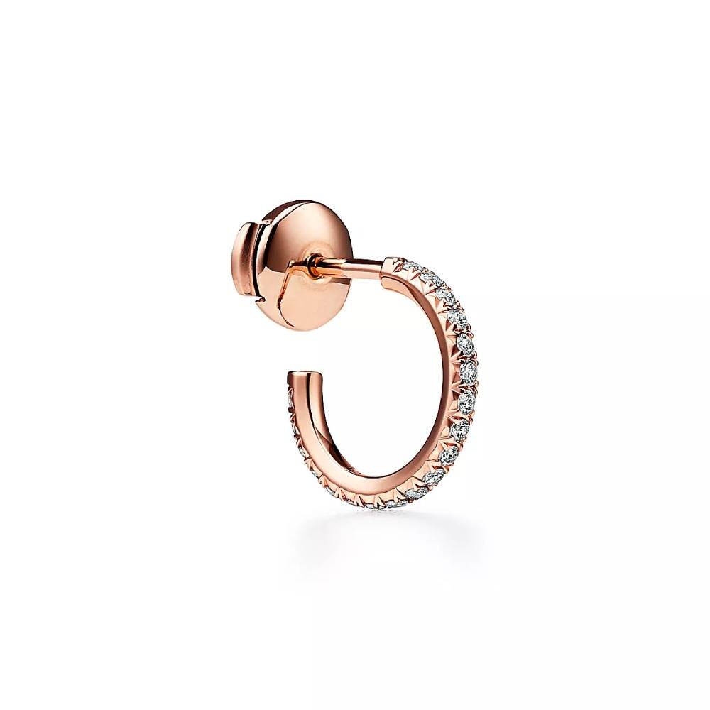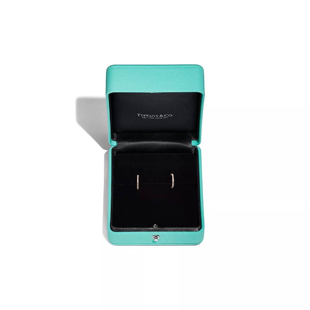 Обтекаемая и современная коллекция Tiffany Metro мерцает, как ночной городской горизонт. Ослепительные бриллианты очерчивают классическую форму этих сережек-колец.