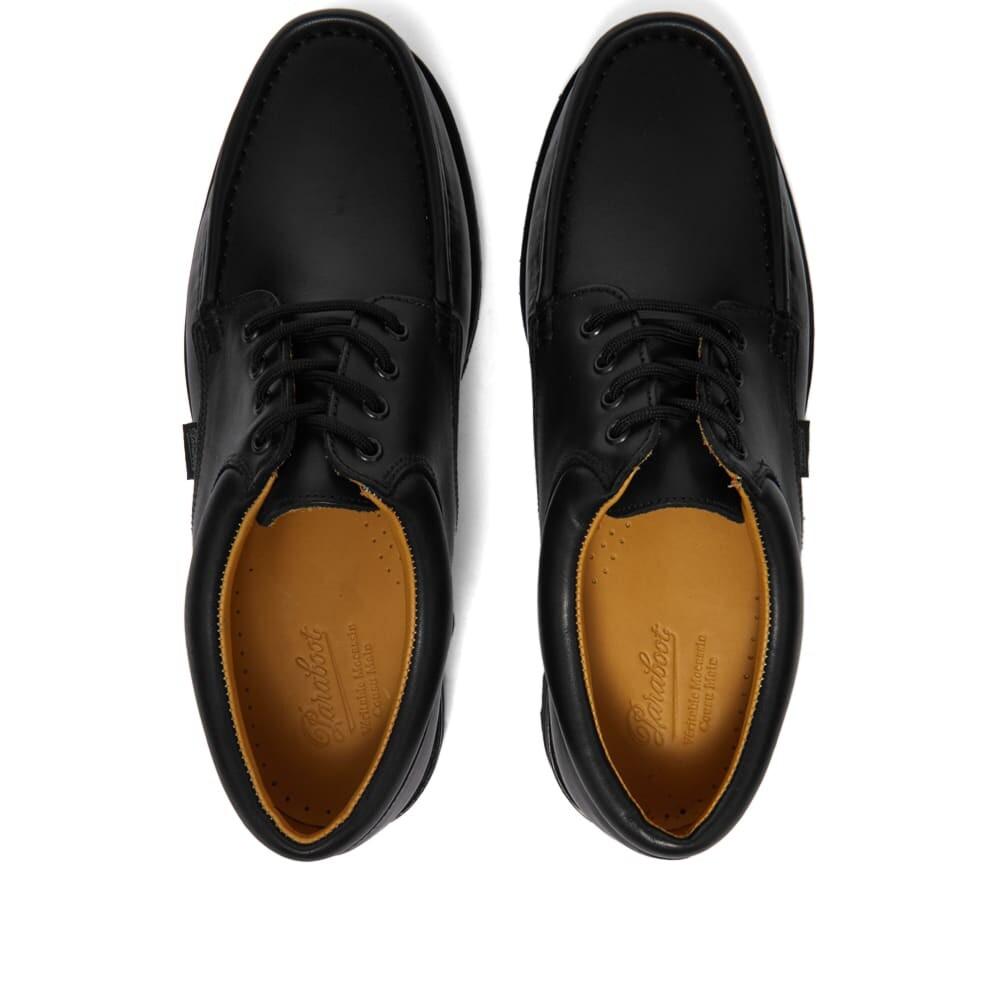 Paraboot дополняет культовую модель 60-х черными туфлями Thiers. Эта пара, ставшая популярной благодаря знаменитостям и законодателям моды, изготовлена из гладкой гладкой кожи и снабжена резиновой подошвой с выступами для максимального комфорта в течение всего дня. В завершение вы найдете плетеные фирменные язычки с обеих сторон.