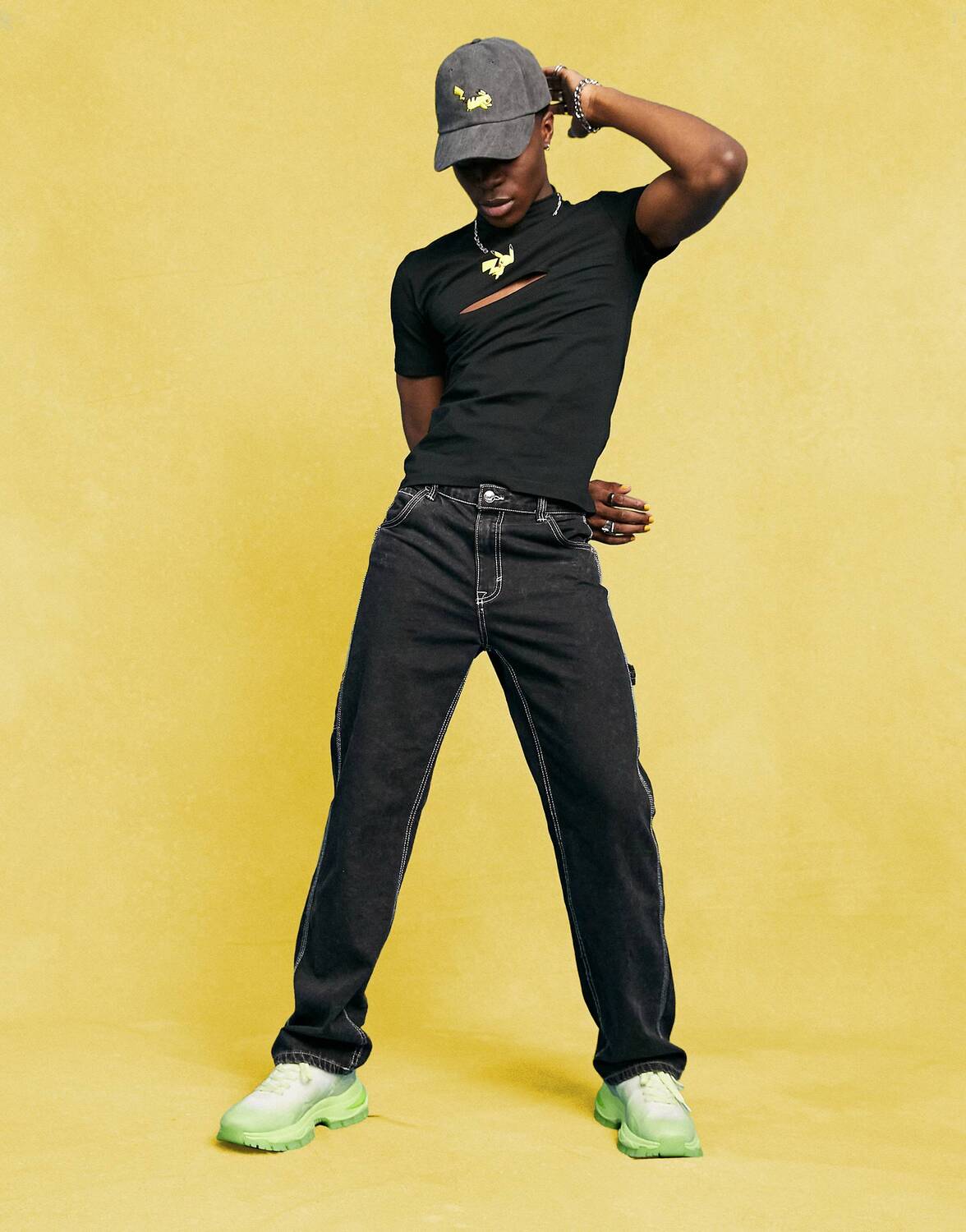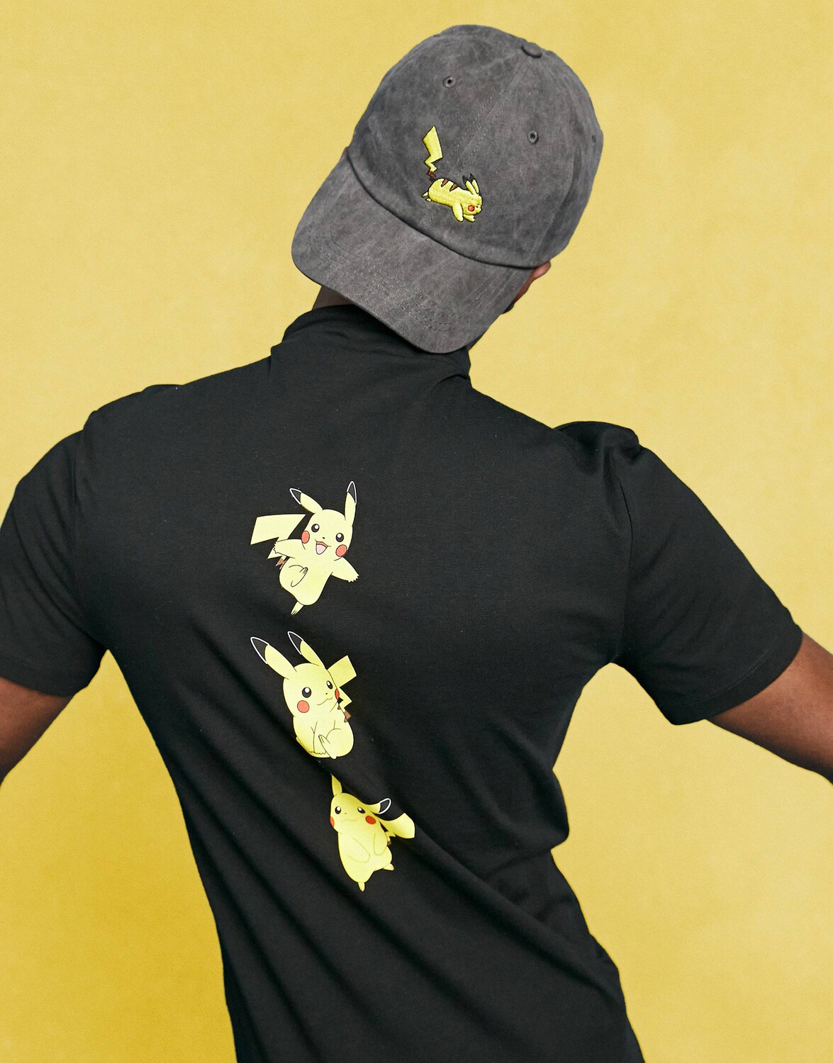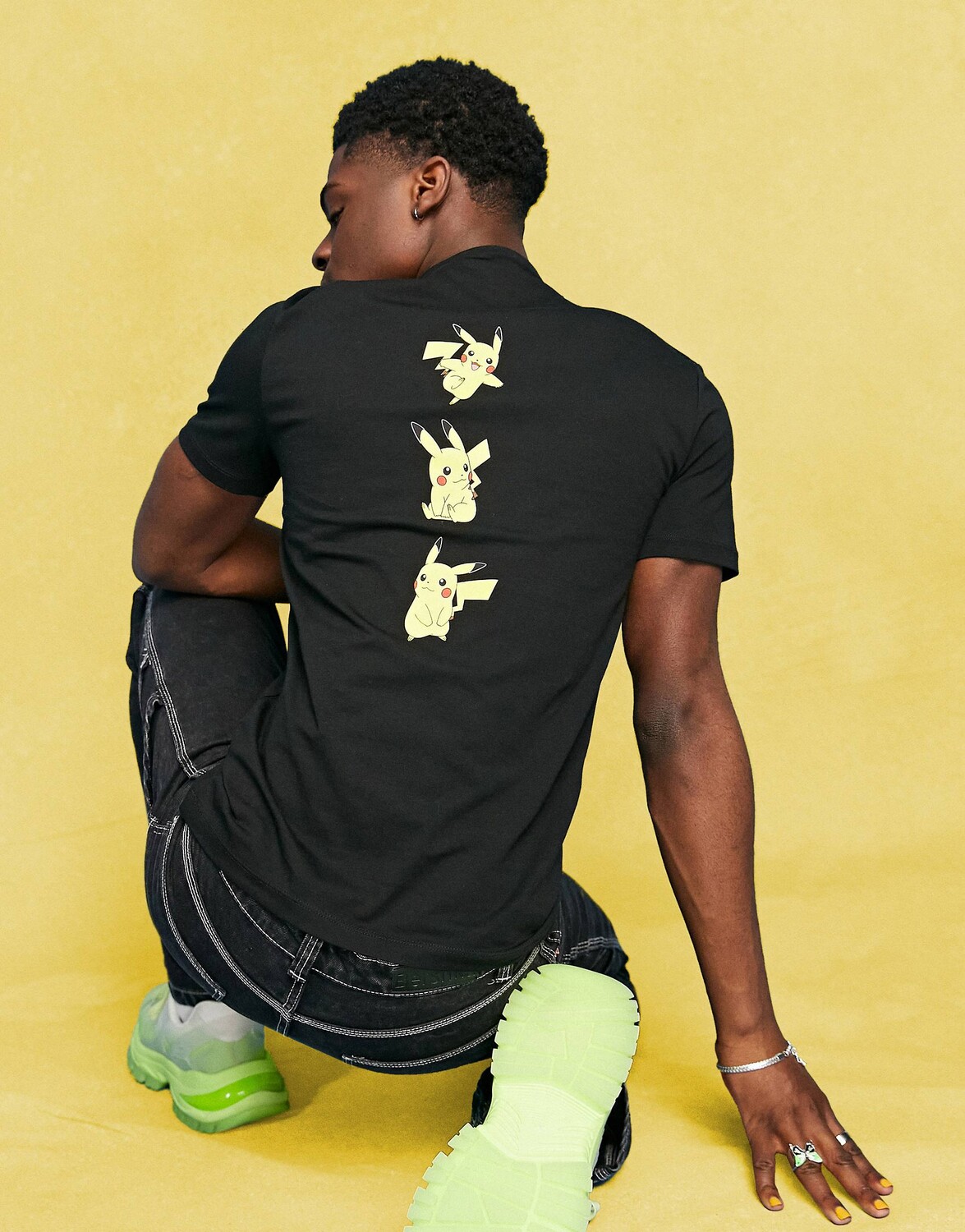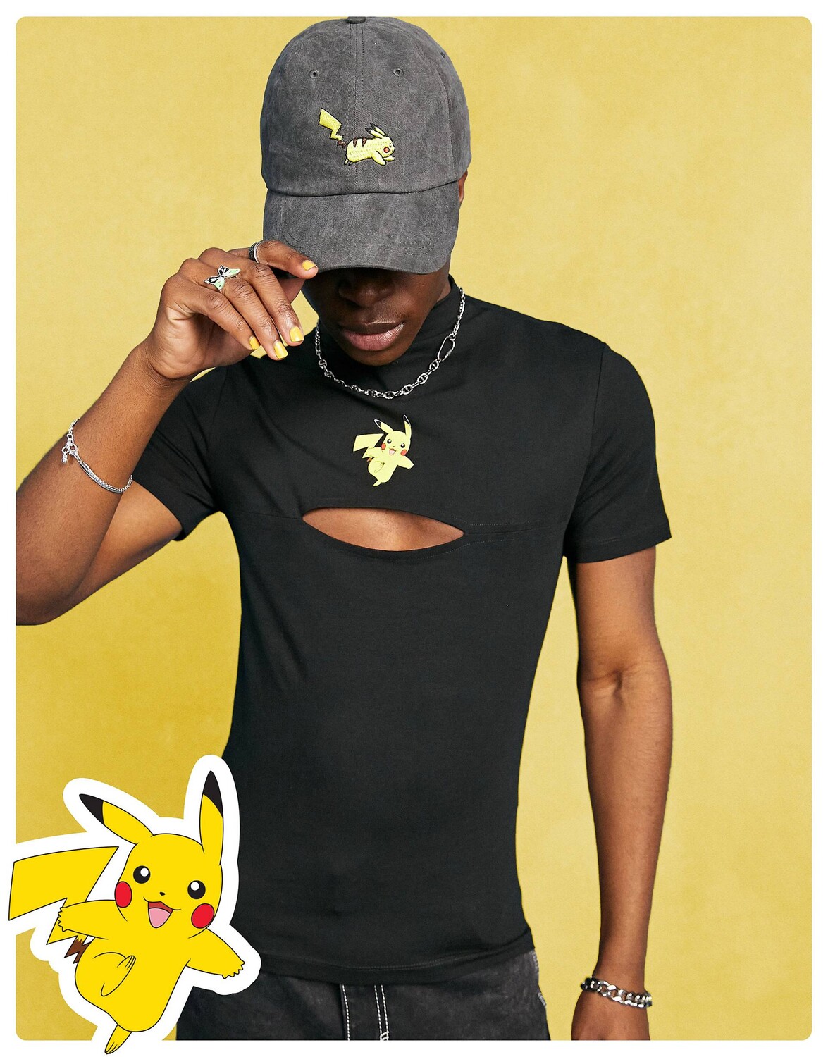 Черная укороченная футболка с вырезами и принтом в виде покемонов ASOS DESIGN