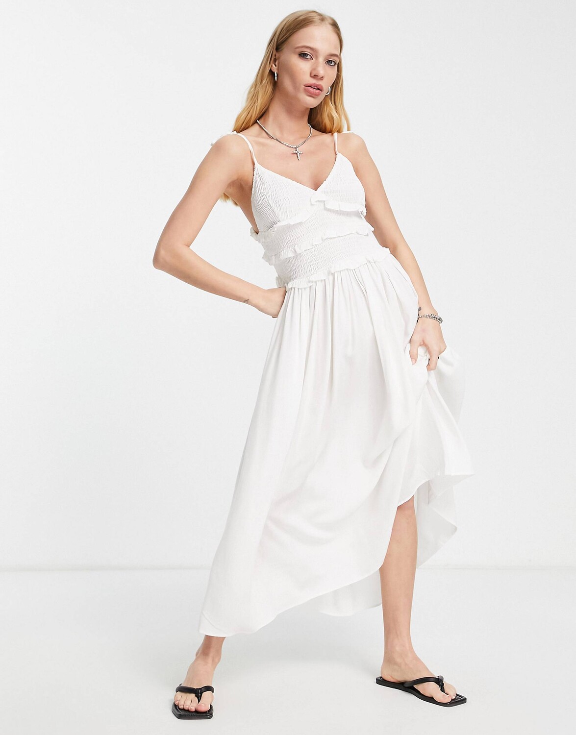 Платье миди цвета слоновой кости со сборками и сборками Topshop