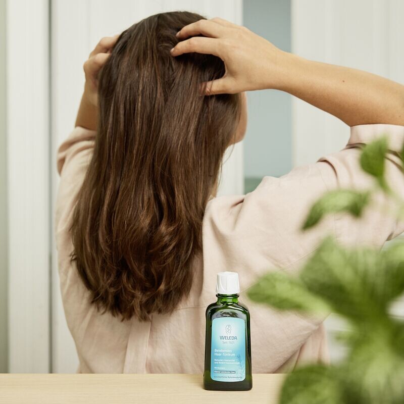 Восстанавливающий тоник с маслом розмарина и ценными экстрактами очитка и листьев хрена улучшает снабжение корней волос питательными веществами, уменьшает их выпадение и способствует естественному росту волос. Он укрепляет волосы и поддерживает здоровье кожи головы. Свежий аромат розмарина придает тонику особую нотку. Розмарин оказывает стимулирующее и согревающее действие. Его ароматный запах оказывает поднимающее настроение и активизирует чувства, подобно теплу солнца, которое впитывается и усваивается растением розмарина.
