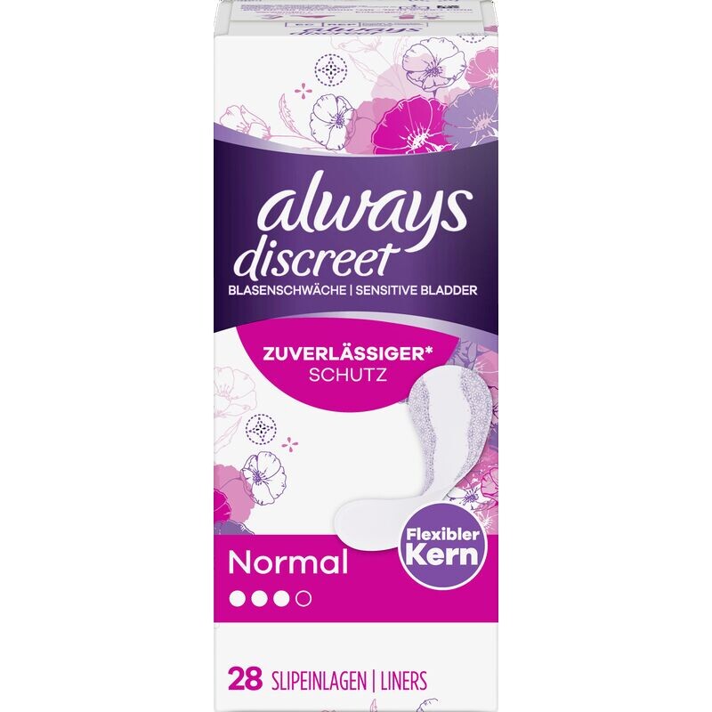 Для моментов, когда вам нужна дополнительная защита, существуют прокладки Always Discreet, предназначенные для защиты от недержания, нормальные при слабости мочевого пузыря. Эти прокладки для трусов ультратонкие и имеют гибкую сердцевину, обеспечивающую максимальный комфорт. Они удерживают жидкость и нейтрализуют запахи, создавая ощущение свежести. Прокладки Always Discreet Normal обеспечивают первоклассную защиту от Always Discreet, если у вас слабый мочевой пузырь или непроизвольное мочеиспускание.