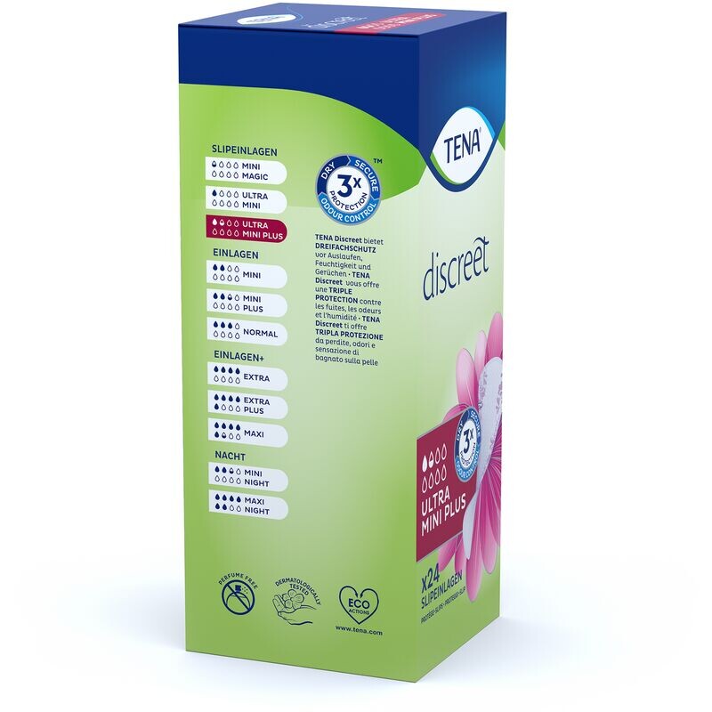 TENA Discreet Ultra Mini Plus — это удлиненные прокладки для нижнего белья при слабости мочевого пузыря, обеспечивающие незаметную защиту во время физической активности, а также при кашле или чихании для женщин с легкой слабостью мочевого пузыря. Они значительно лучше впитывают влагу, чем обычные ежедневные прокладки, и благодаря технологии microPROTEX мгновенно изолируют запахи и жидкости. Потому что осмотрительность так же важна, как и безопасность.