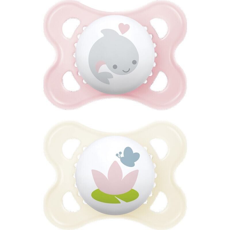 Силиконовые пустышки MAM Original 0-6 в наборе из 2 штук - пустышки изготовлены из безопасных и устойчивых, биовозобновляемых материалов, с ортодонтической присоской, соска изготовлена из специальный силикон SkinSoft кажется особенно мягким и знакомым и поэтому инстинктивно принимается 94% детей.¹ Пустышки MAM разработаны совместно со стоматологами и особенно безопасны для зубов и челюстей благодаря своей симметричной плоской присоске. Вместе с насадкой для соски симметричной формы соска всегда лежит во рту ребенка правильно. Щиток особенно бережен к чувствительной коже младенцев благодаря большим отверстиям для воздуха, закругленной форме и выступам внутри. Кнопка соски удобна для маленьких детских ручек, но в то же время она настолько плоская, что соска удобна для ребенка в любом положении. MAM Original — это климатически нейтральная пустышка MAM.