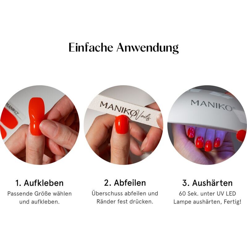 Maniko Nails предлагает реальную альтернативу маникюрному салону, просто не выходя из дома. Благодаря сложной технологии UV Gel Strip можно быстро и легко добиться гель-маникюра студийного качества. Просто приклеивайте, подпиливайте, лечите и покоряйте мир.