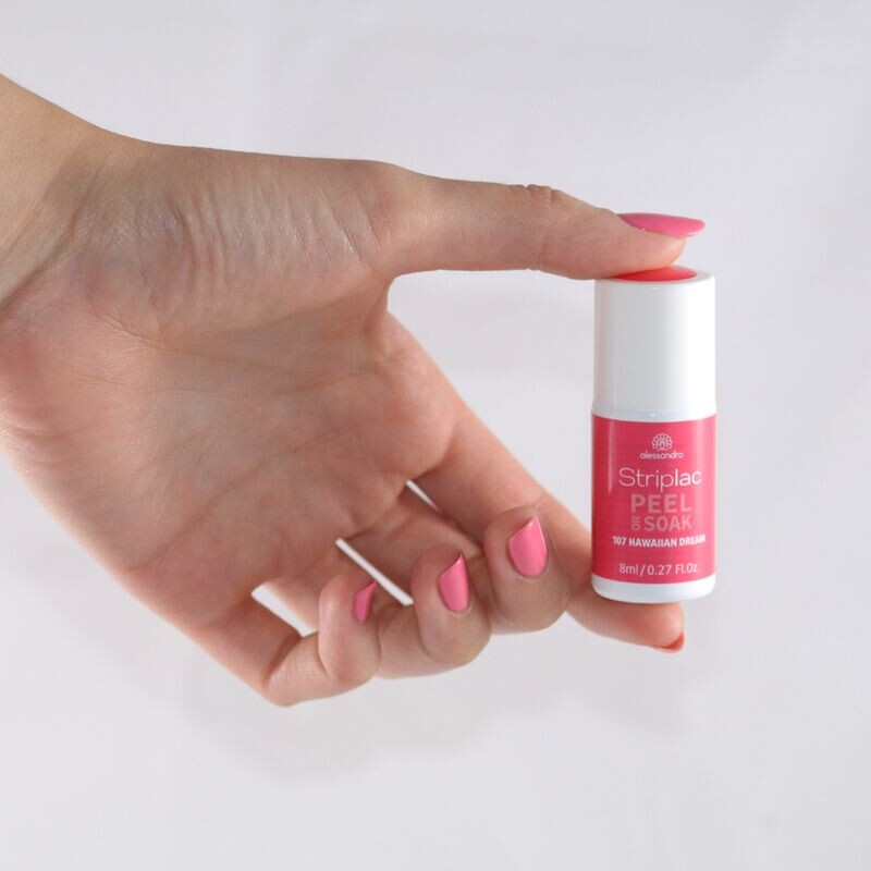 Aloha Ярко-розовый оттенок Peel или Soak Striplac цвета Hawaiian Dream напоминает о рае и его великолепии цветов – для ногтей, которые выглядят так, словно только что вернулись из отпуска. Самое лучшее - СТРИПЛАК ВЕГАНСКИЙ и БЕЗ ЖЕСТКОВОСТИ. Легко наносится, не требует времени на высыхание и держится до 3 недель! Нет проблем. Просто нанесите слой Hawaiian Dream Striplac и закрепите верхним слоем. Благодаря Peel или Soak краску можно удалить двумя способами: с помощью Peel-Off Activator краску можно удалить в один слой с помощью палочки для копыт с помощью Soak-Off Liquid, она аккуратно удаляется с помощью фольги; подушечки. alessandro Striplac - для ногтей, которые всего за 15 минут будут выглядеть так, как будто только что вернулись из отпуска.