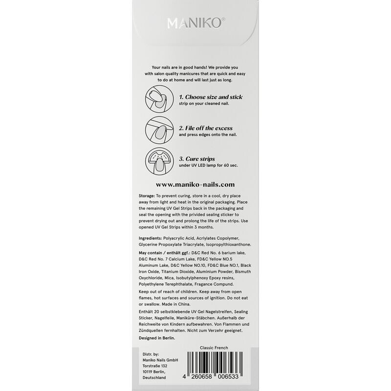 Maniko Nails предлагает реальную альтернативу маникюрному салону, просто не выходя из дома. Благодаря сложной технологии UV Gel Strip можно быстро и легко добиться гель-маникюра студийного качества. Просто приклеивайте, подпиливайте, лечите и покоряйте мир.