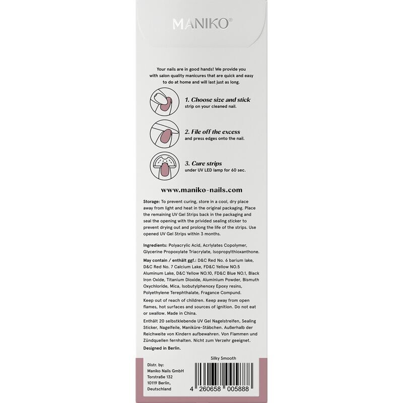 Maniko Nails предлагает реальную альтернативу маникюрному салону, просто не выходя из дома. Благодаря сложной технологии UV Gel Strip можно быстро и легко добиться гель-маникюра студийного качества. Просто приклеивайте, подпиливайте, лечите и покоряйте мир.