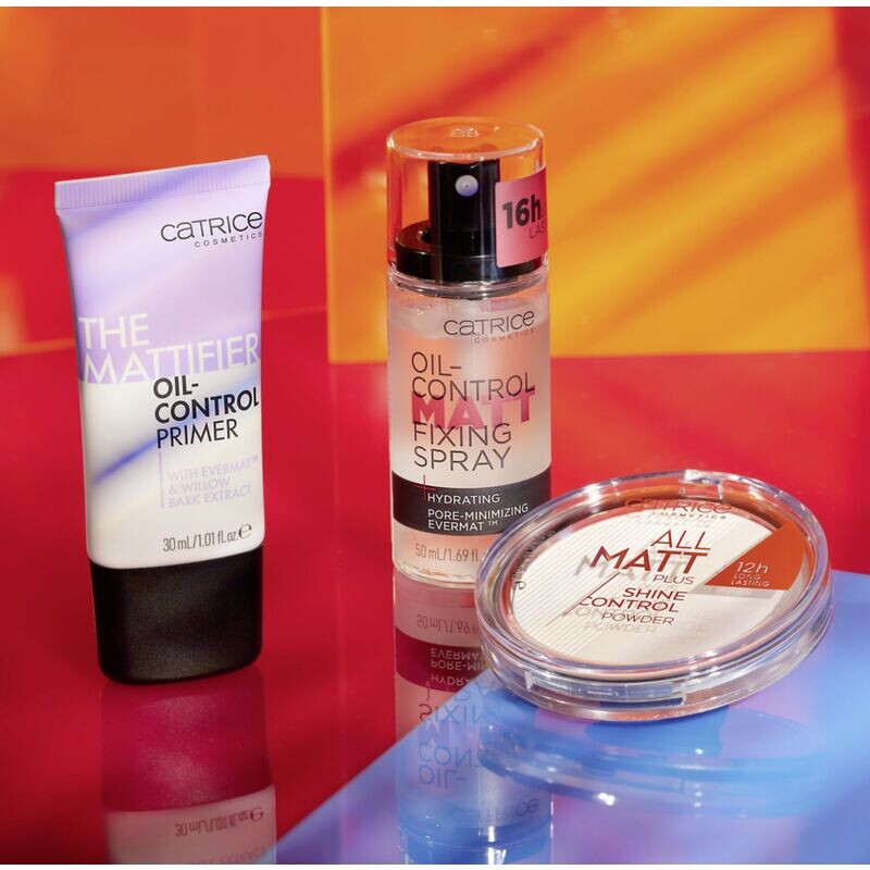 Три продукта для безупречного матового цвета лица: CATRICE The Matt Face Pro Set включает в себя матирующую пудру, праймер Oil-Control Primer и фиксирующий спрей. Вместе они обеспечивают идеальную основу перед макияжем, антибликовый эффект и идеальную фиксацию. Жирные участки кожи становятся матовыми, цвет лица становится ровным.