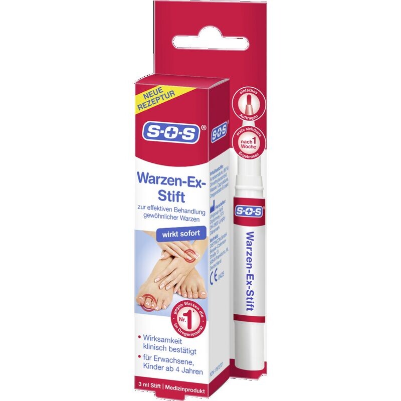 SOS wart ex pen используется для избирательного лечения бородавок на кистях, стопах, туловище, руках и ногах. Средство SOS для бородавок немедленно впитывается в бородавку. Он содержит кератолитический активный ингредиент, который локально разрушает и высушивает ткани и, таким образом, лечит бородавки.