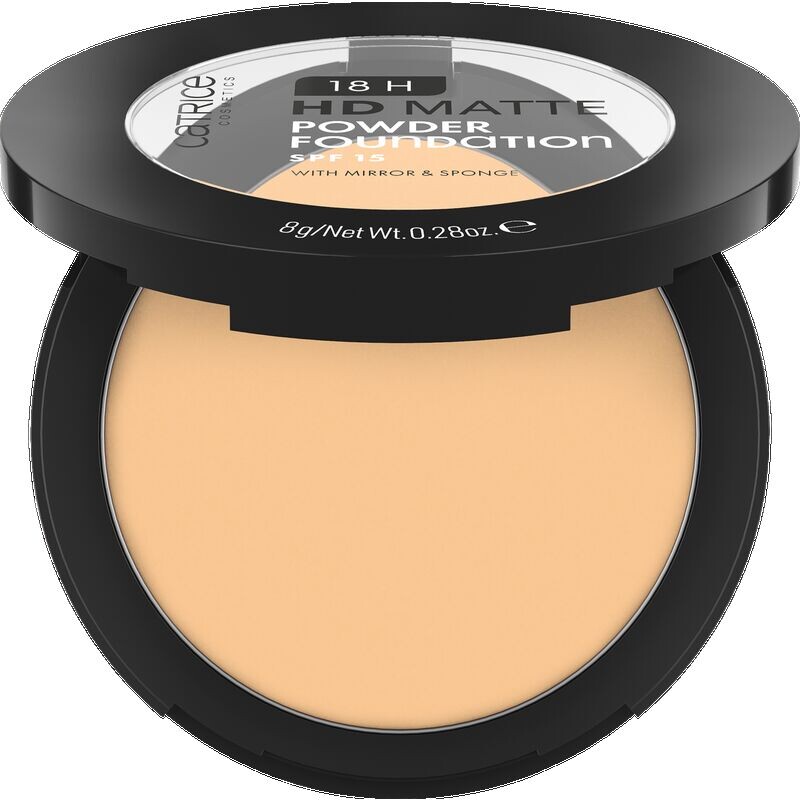 Прощай, блеск кожи: тональная основа 18H HD Matte Powder Foundation покрывает кожу как жидкая основа и в то же время матирует цвет лица, как пудра. Матирующий эффект сохраняется до 18 часов, а пудровая основа устойчива к поту и не стирается. Уникальная текстура состоит из высокотехнологичных пигментов в легкой, деликатно тающей прессованной форме порошка. Он невесом на коже, некомедогенен и придает коже визуально гладкий вид с эффектом аэрографа. Еще один плюс: благодаря SPF15 продукт обеспечивает легкую защиту от ультрафиолета. Встроенное зеркальце и спонж, с помощью которых можно легко нанести тональную основу, идеально подходят для макияжа утром или для подкраски на ходу.
