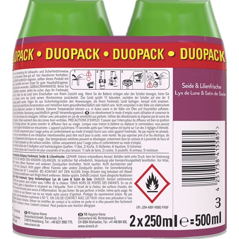 Air Wick Freshmatic Max Refill DUO Silk & Lily Freshness — соблазнительный цветочный аромат, вдохновленный нежной свежестью лилии, оттенком шелка и чувственной ванилью.