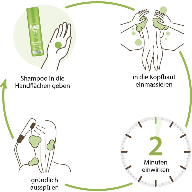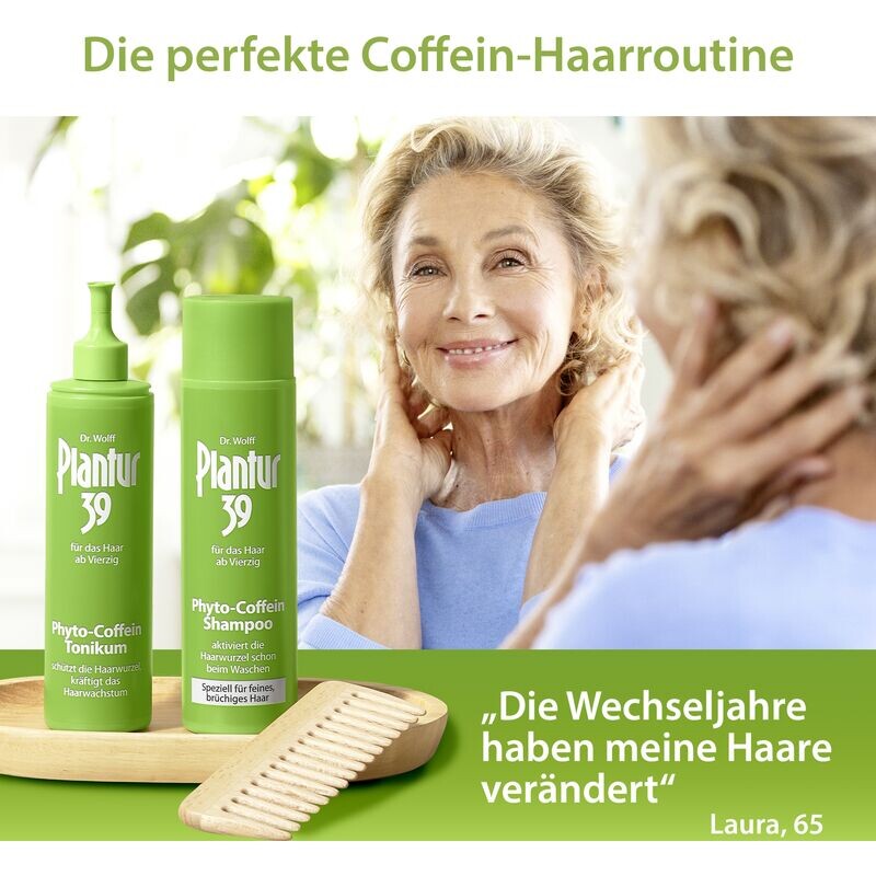 Корень женского волоса защищен высоким содержанием женских гормонов (эстрогена) до наступления менопаузы. В дальнейшем эта доля снижается и возрастает влияние мужских гормонов. Результат: выпадение волос. Активирующий кофеин, содержащийся в этом шампуне, проникает в волосяной фолликул сразу после мытья волос (обнаруживается через 120 секунд воздействия). Фитоактивные ингредиенты природы помогают коже головы защититься от последствий падения уровня эстрогена.