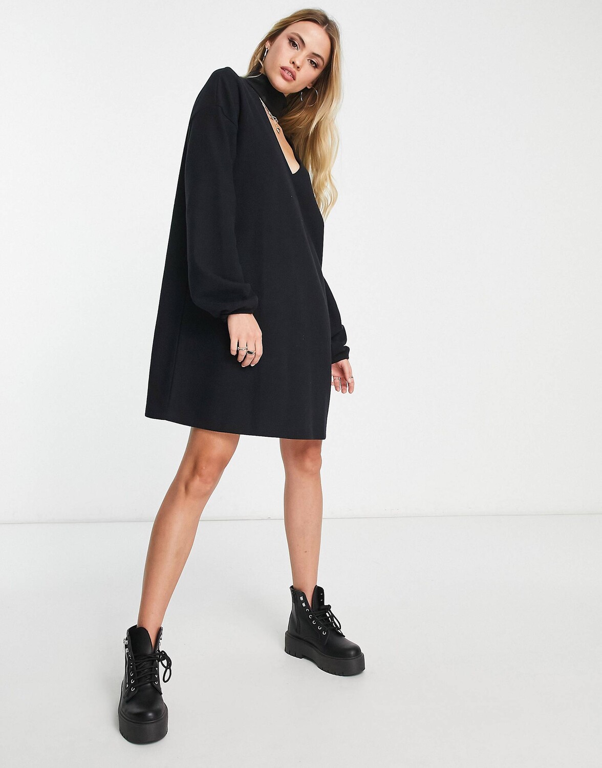 Черное платье мини-джемпер с очень мягким колье и длинными рукавами ASOS DESIGN Tall