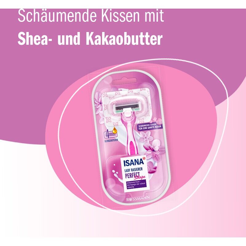 ISANA LADY RAZOR PERFECT SHAPE имеет закругленную качающуюся головку для комфортное, чистое и гладкое бритье. Пенящиеся подушечки с маслом ши и какао, а также витамином Е и маслом жожоба окружают лезвия с керамическим покрытием и активируются при контакте с водой, поэтому гель или пена для бритья не требуются. Сменные лезвия также подходят к ручкам Venus*.