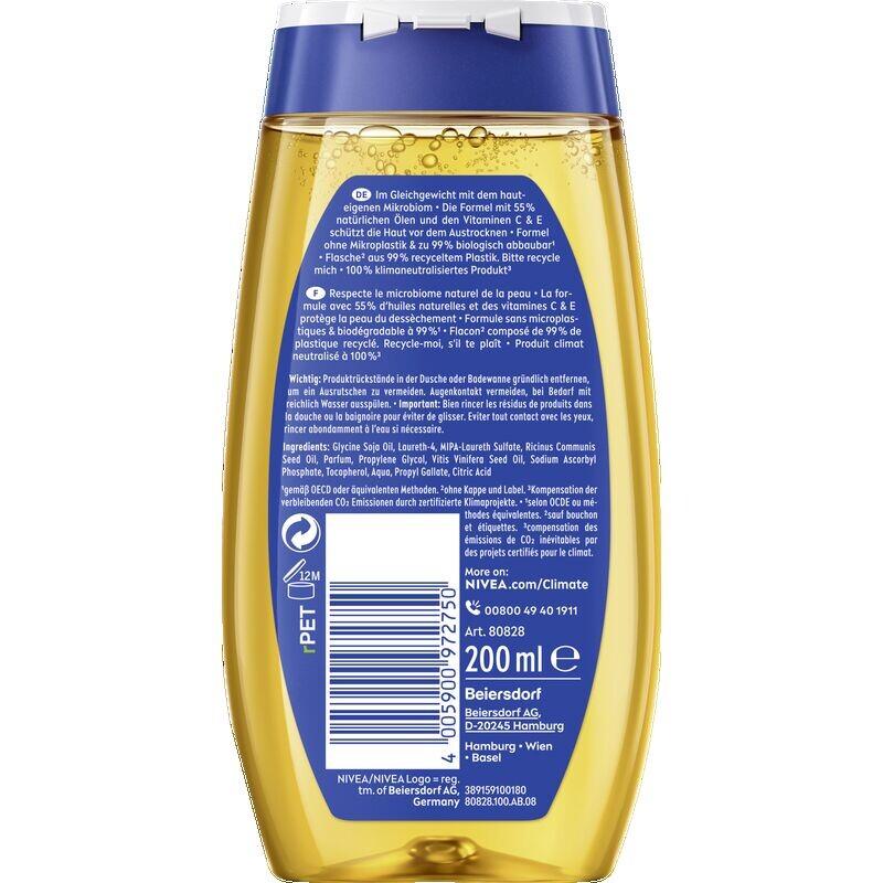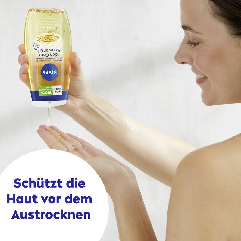 Почувствуйте гладкость кожи с насыщенным маслом для душа NIVEA. Почувствуйте, как ухаживающее масло для душа, содержащее 55% натуральных масел, интенсивно питает даже сухую кожу. В сочетании с водой масло для душа превращается в бархатисто-мягкую пену и источает теплый аромат. Масло для душа полезно не только для вашей кожи, но и для окружающей среды: формула не содержит микропластика, а флакон на 96% изготовлен из переработанного материала, за исключением крышки и этикетки. Для ощущения эластичности кожи: Масло для душа NIVEA Richly Nourishing.