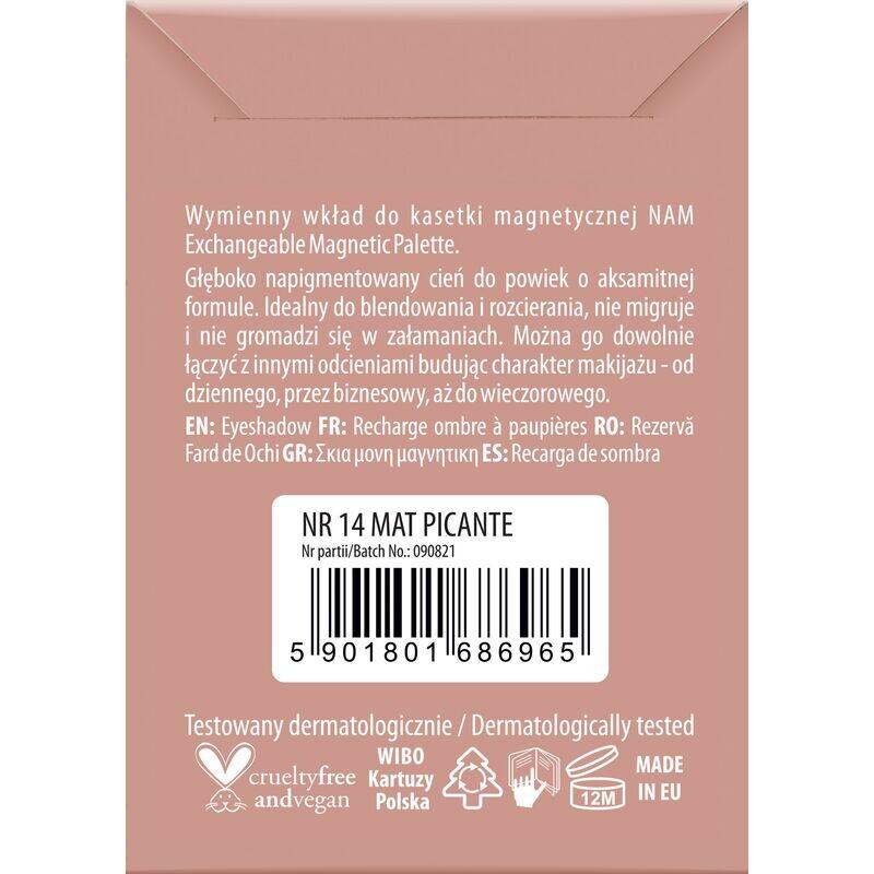 Коллекция матовых теней для век, всегда предлагающая элегантный и четкий макияж глаз, была разработана в духе нулевых отходов – минималистична, экологична и без лишнего декора. Он упакован в минималистичный и компактный картридж, который помещается в сменную магнитную гильзу для палитры NAM. Их можно комбинировать по отдельности, поскольку они продаются отдельно, а также хранить их в практичных магнитных косметических коробочках, которые предлагает NAM.
