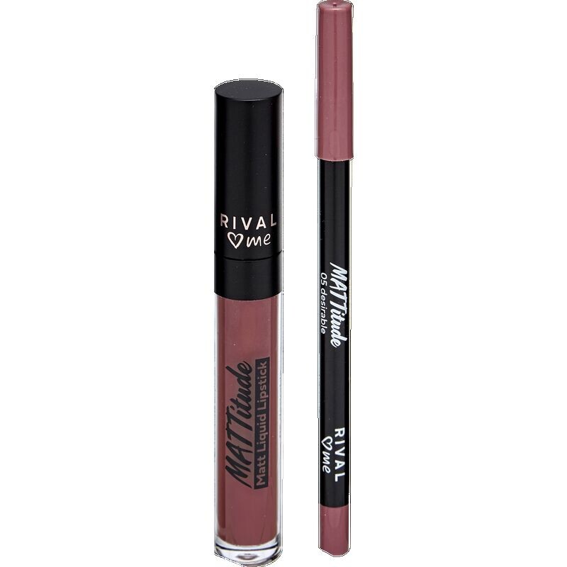Набор для губ RIVAL loves me Matttitude Lip Kit содержит матовую жидкую помаду с стойким эффектом и соответствующий карандаш для губ кремовой текстуры для нежного нанесения. Сначала подчеркните контуры губ карандашом, а затем заполните их жидкой помадой.