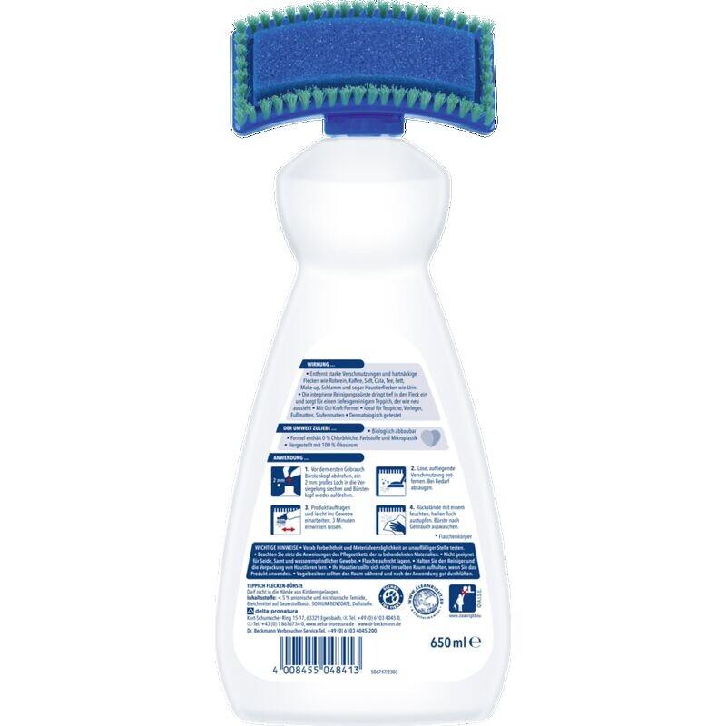 Мощная очищающая формула с активным кислородом от Dr. Кисточкой для пятен для ковров Beckmann можно оптимально работать с помощью щетки-аппликатора. Он удаляет даже стойкие пятна от красного вина или кофе на коврах, не оставляя следов. Кроме того, специальные активные ингредиенты надолго устраняют запахи, вызванные пятном, что важно при загрязнениях домашними животными (рвота, фекалии или моча), а также оставляют приятный свежий аромат.